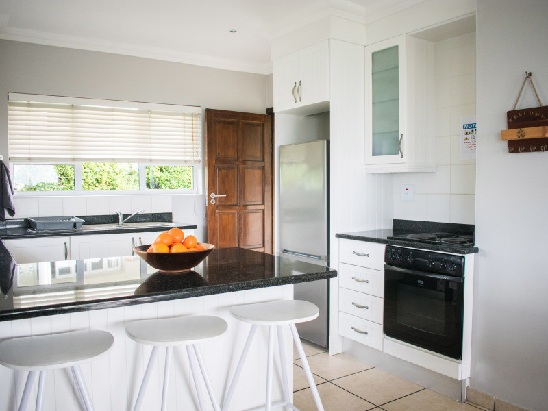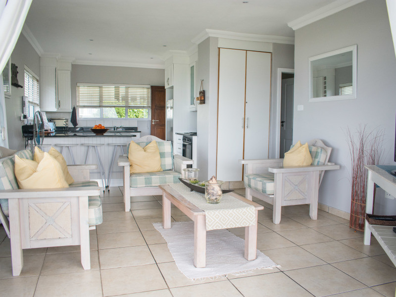 The lounge has a Smart TV and Wi-Fi so you can stream your favourite movies and apps (bring your passwords etc. along). The lounge is enclosed by wrap-around stack doors that open onto the balcony, boasting stunning 180-degree ocean views - watch the whales, dolphins & sardines run from your stoep...!