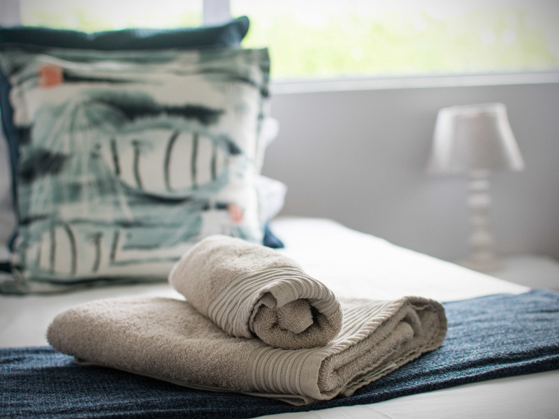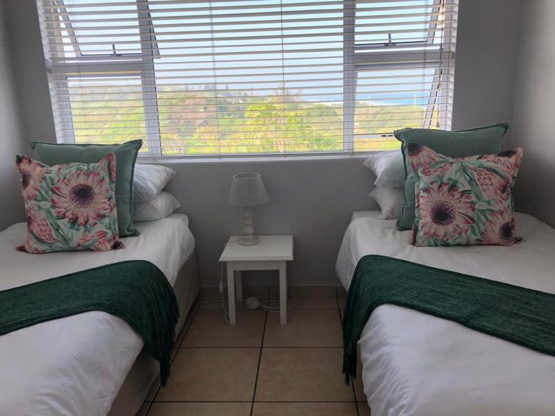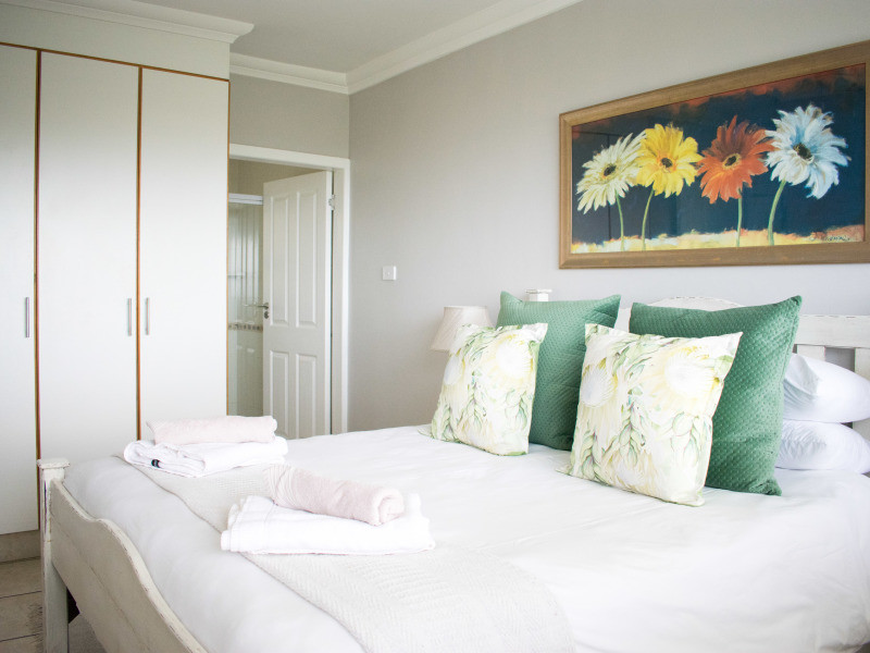 This first-floor corner apartment can accommodate 6 guests and has 3 bedrooms, 2 bathrooms, a kitchen, and a lounge. The main bedroom is furnished with a double bed, the second bedroom has the option of either two single beds or 1 large double bed, whilst the third bedroom has 2 single beds. The main bedroom has its own shower/ toilet en-suite, whilst the other two bedrooms share the main bathroom with a toilet. The unit features an open-plan, well-equipped kitchen that contains the necessary appliances to cook meals and a dishwasher to aid in cleaning up. However, the unit is serviced daily except at weekends and public holidays.