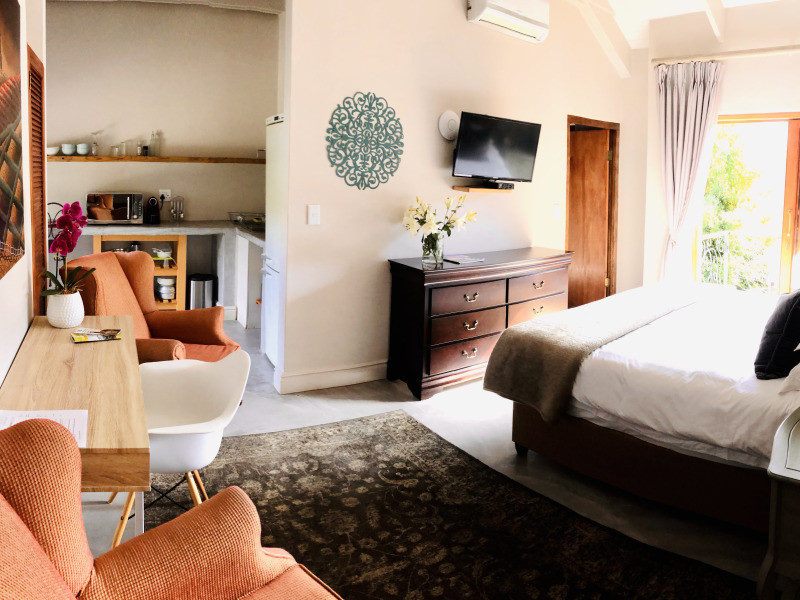 With its country farm atmosphere joined with panoramic views over the vineyards and mountains, lush indigenous gardens, luxury air-conditioned accommodation and personalised service, Aan de Vliet is the ideal base from which to explore the beauty of the Western Cape.