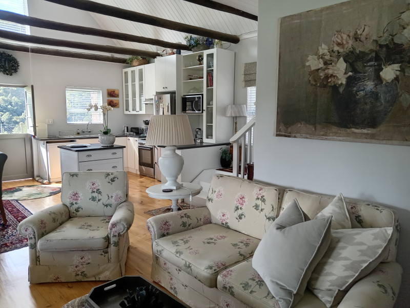 Rose Cottage (sleeps 4): The cottage comprises 2 en-suite bedrooms. The open-plan lounge/kitchen area contains a breakfast counter, and a sliding window that opens to the outside bar/counter area, for convenience and that indoor-outdoor feeling.