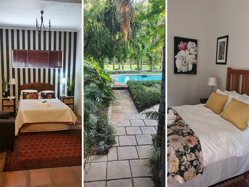The guest house is located near the CBD, schools, and hospitals. Stay in one of our 5 luxurious en-suite rooms, each with its own private entrance, air-conditioning, bar fridge, tea and coffee-making facilities, and TV with DStv. Some of the rooms also walk out onto a private patio and into the lush garden facing the swimming pool, where you can relax and absorb the Kalahari sun.