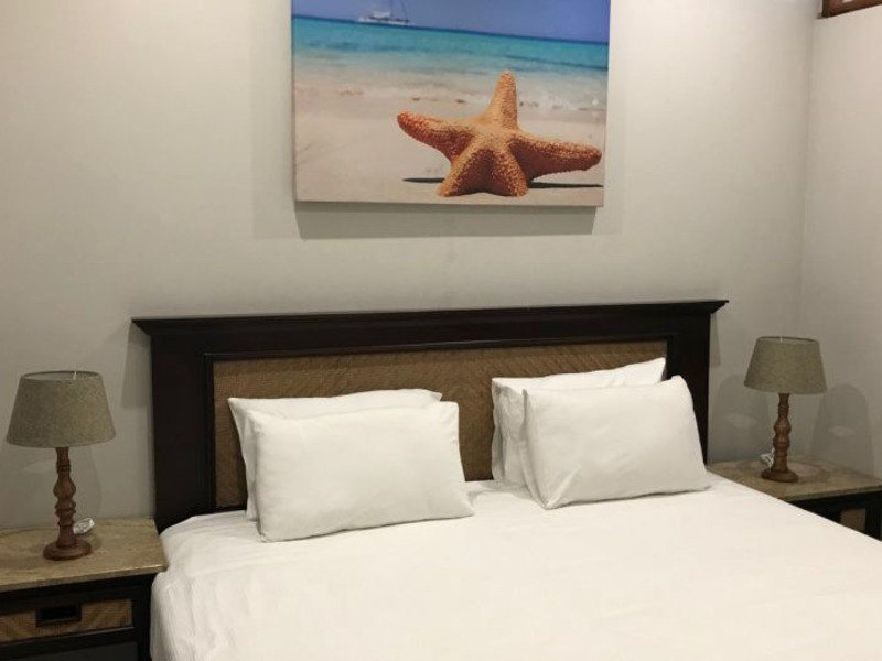 One Bedroom Apartments are able to accommodate two guests in a double bed with a fan. The apartment has an en-suite bathroom with a shower and a bath. Further amenities include a bar fridge and a TV.