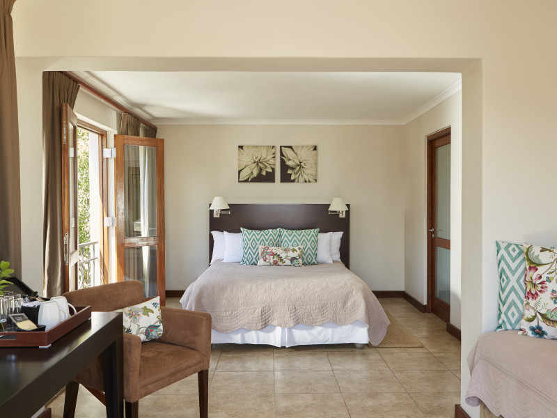 The Rooms: Discover comfortable rooms with ample space to relax. Every bedroom has a Cosy Private Patio, a Serene Garden Terrace or a Quaint Juliet Balcony. We offer extra length King-, Queen- and Twin-bedded rooms. Extra beds on request. All our rooms are en-suite (toilet, basin and shower), with contemporary finishes and furnishing, including exclusive bathroom amenities.