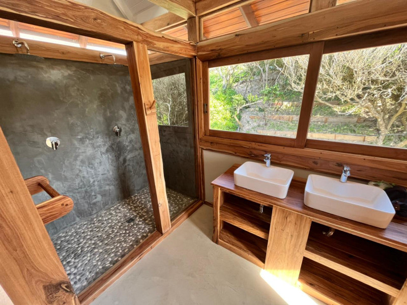 This private and modern villa sleeps 14 guests in 5 tastefully decorated bedrooms. 2 of the bedrooms are family rooms comprising of a queen bed and a bunk bed, and 2 of the bedrooms are honeymoon suites consisting of a queen bed. Each room has a ceiling fan, aircon, and an ensuite bathroom. All of the rooms open onto their own private deck, where sunrises can be enjoyed whilst soaking up the magnificent ocean and beach view. Linen, bath towels and amenities are provided.