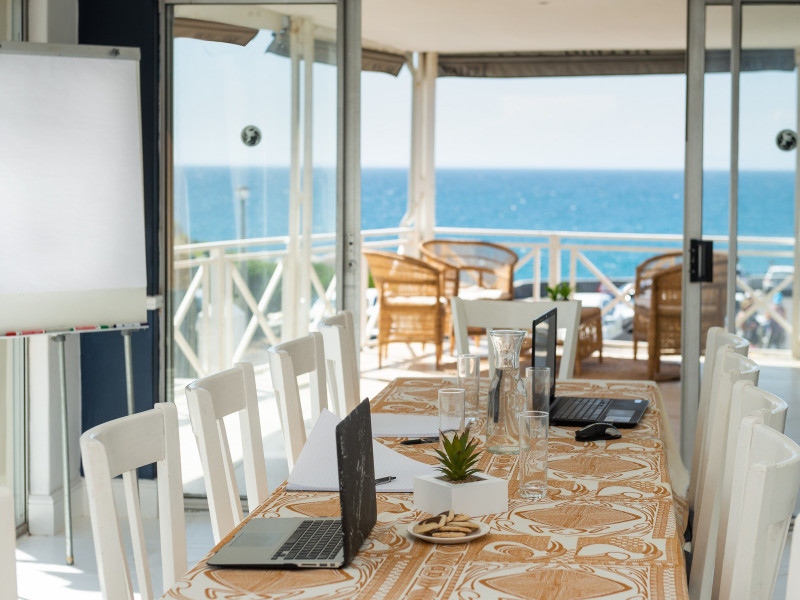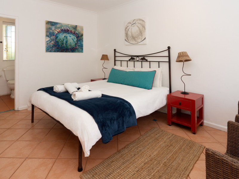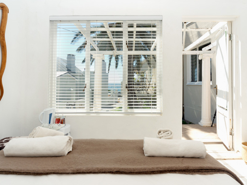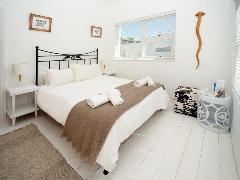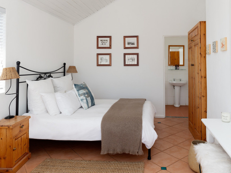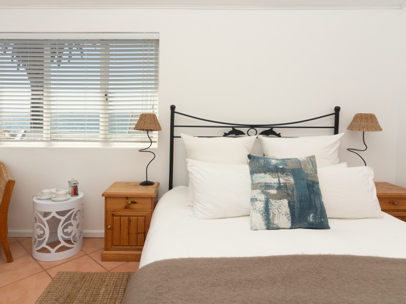 Our rooms offer simple luxury (tea and coffee, luxury linen, no TVs). Individual rooms do not have clear sea views, but you are welcome to relax on our restaurant deck which looks straight out over False Bay. Whales are often spotted in the winter months.