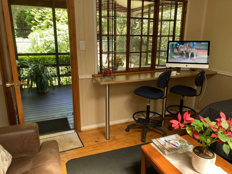 The property is fenced, and the log cabin has secure, covered parking. The cottage has parking right in front of the unit under shady trees.