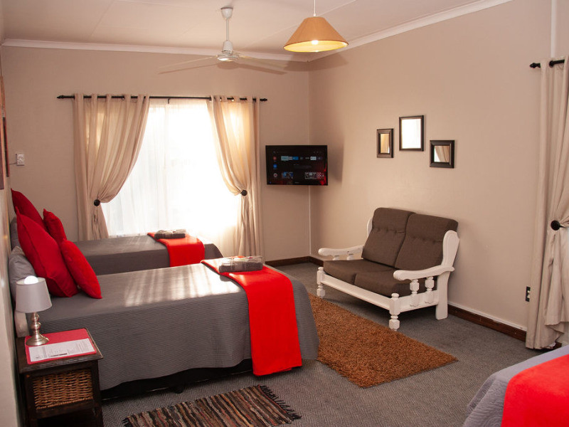 Cairos Guest House is situated on a smallholding in Riverview AH, Emalahleni, Witbank and offers guests a variety of units. Guests can book large En-suite Rooms, Single Rooms and Self-catering Apartments. The rooms and units are furnished with double beds, three-quarter beds or single beds, and most of the rooms in the main guest house has an en-suite bathroom. The main guest house rooms are furnished with DStv and serviced daily. The self-catering house units also have a kitchenette equipped with a fridge, an oven stove, a microwave, and tea-and-coffee-making facilities. Braai facilities, laundry facilities as well as spacious parking are available. A small hall is available for conferences and small functions. WIFI is available in all the rooms and units.