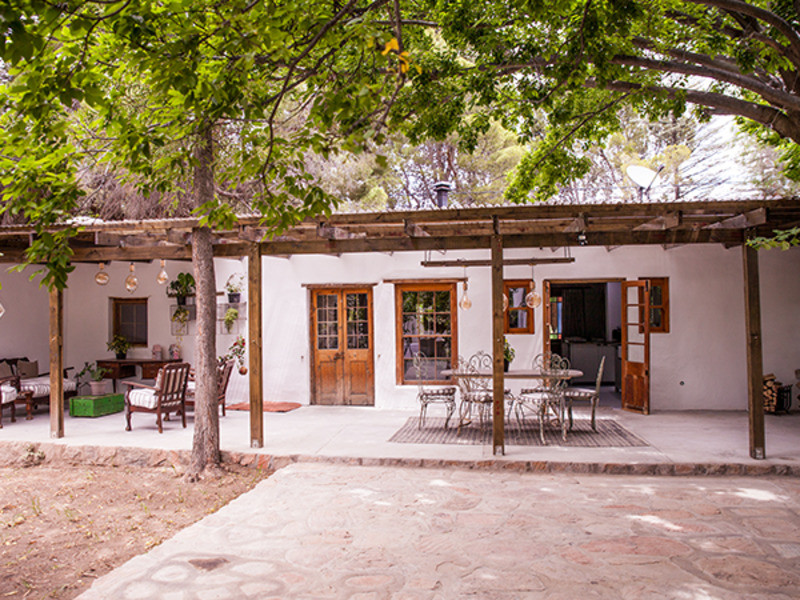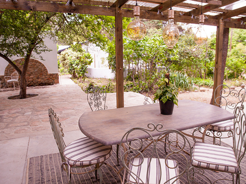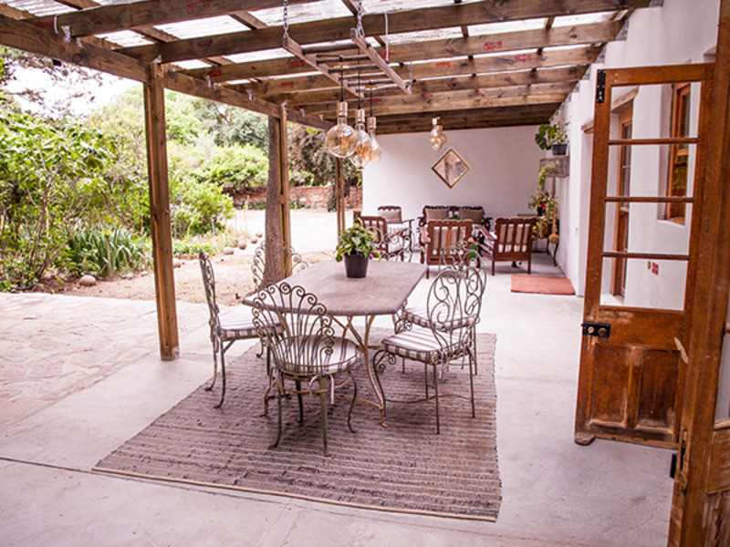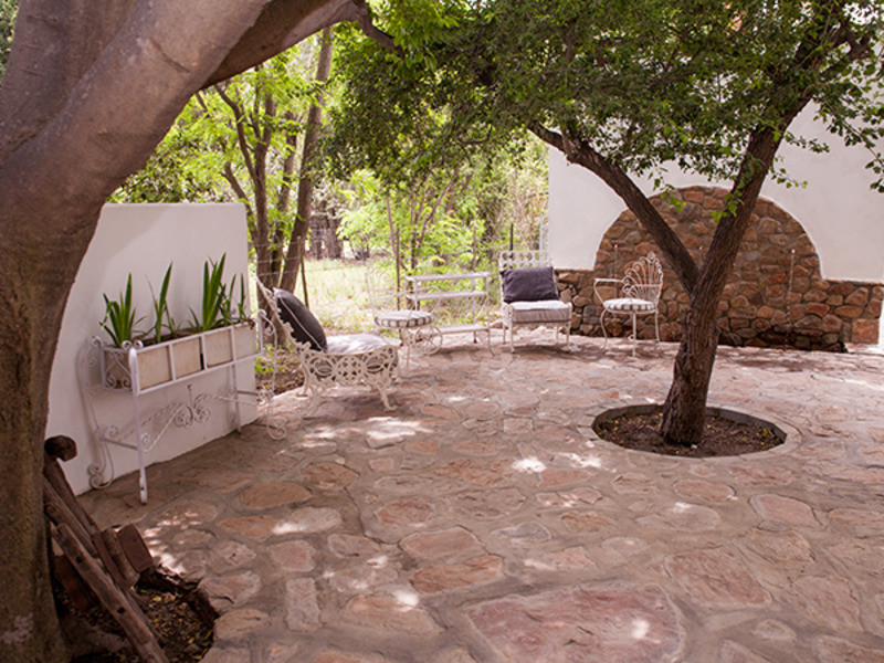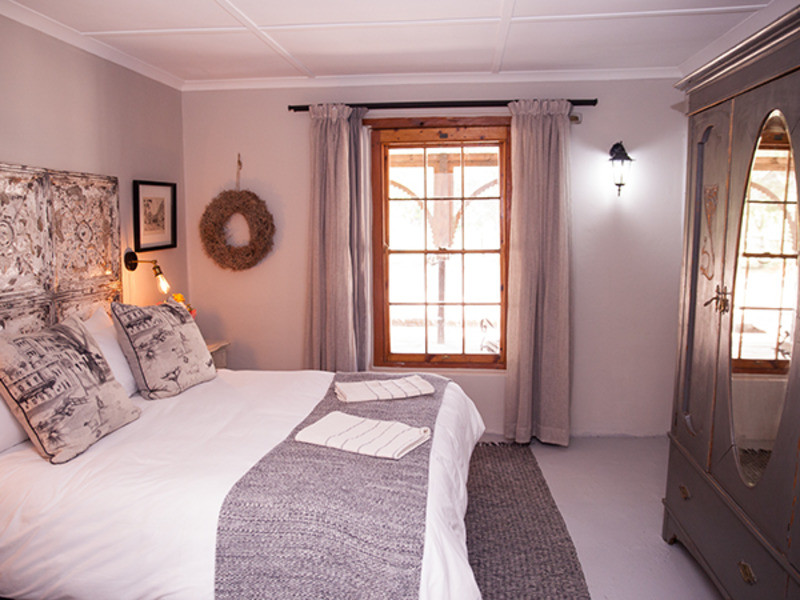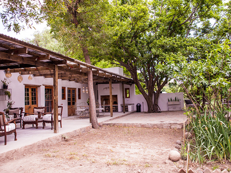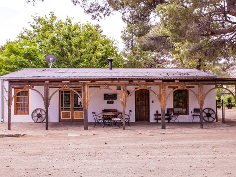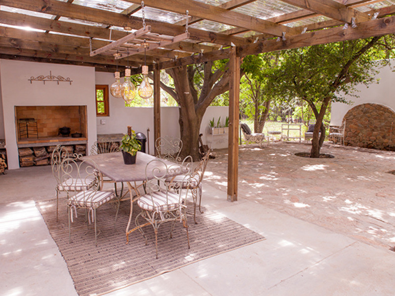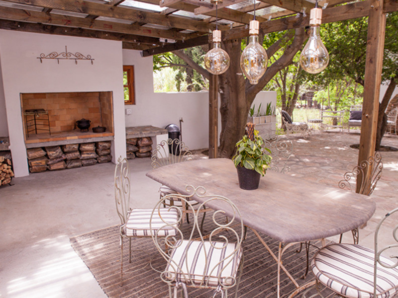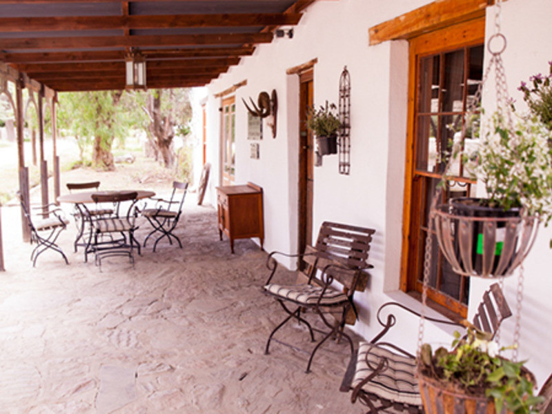 All rooms are equipped with electric blankets, heaters, fans and hair dryers. The outside braai area is perfect for the lovely Karoo summer evenings under the stars. The front patio has a lovely view of the nearby mountains and people-watching and wine on the front stoep with the water in the old “leivoor” system running at your feet is just magical. If you are lucky then the horses that are roaming free will graze past the stoep.