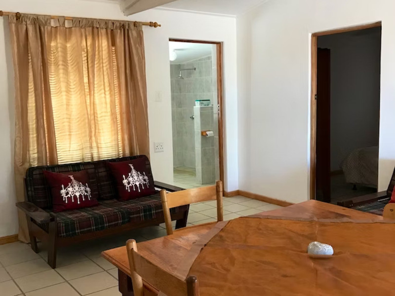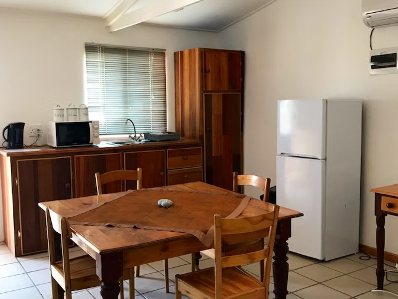 The kitchen is equipped for self-catering and contains a stove, fridge-freezer, microwave, and cutlery and crockery. The dining area has seating space for 4 people, while the lounge has a couch and a flat-screen TV. Air-conditioning is also provided. Outside there are braai facilities available.