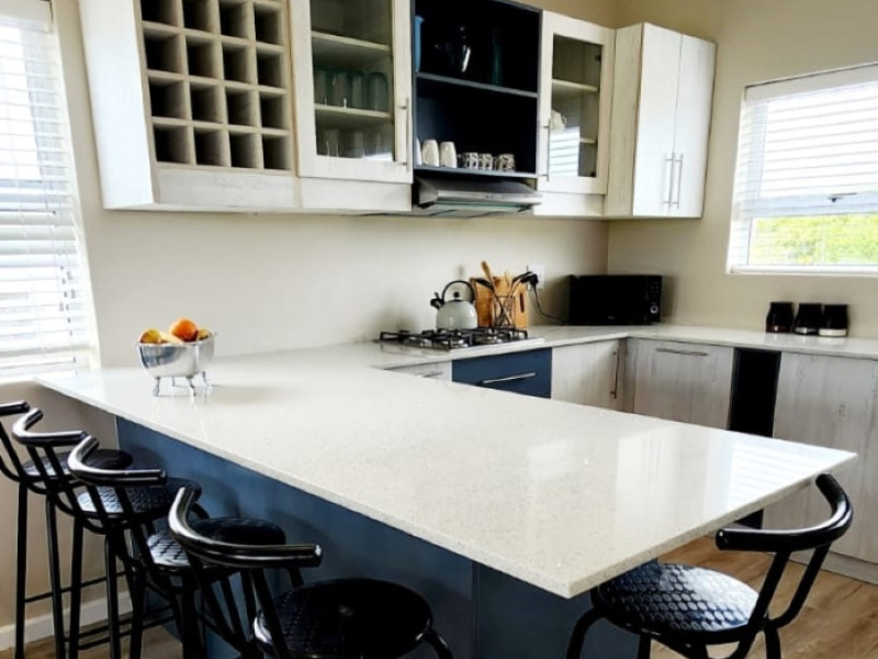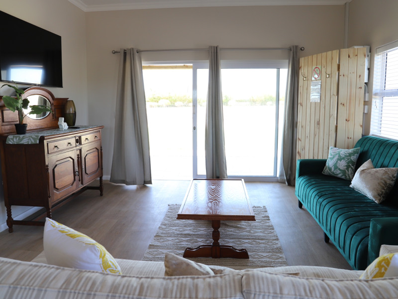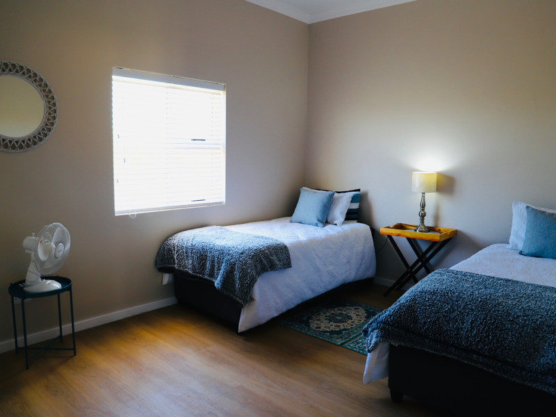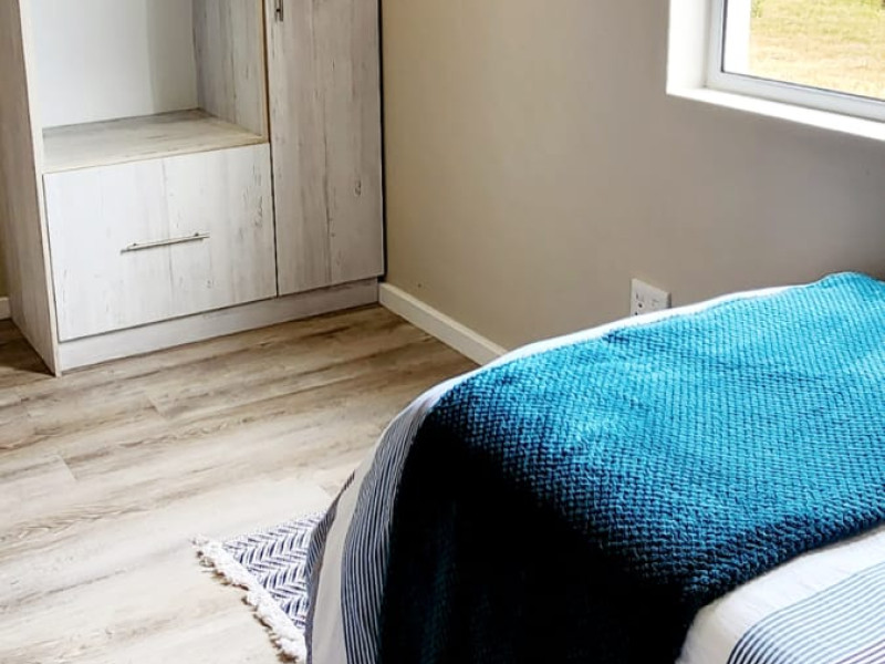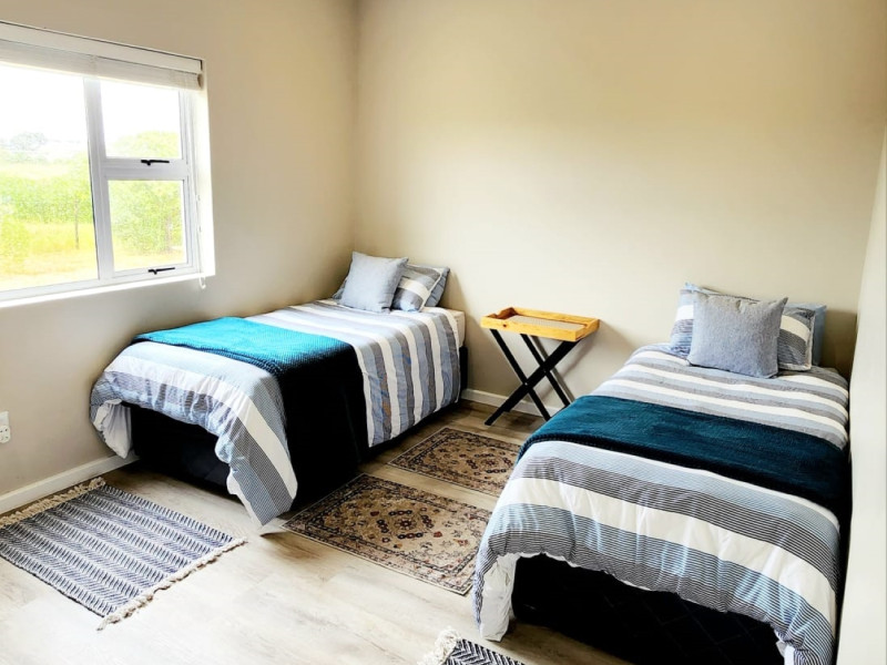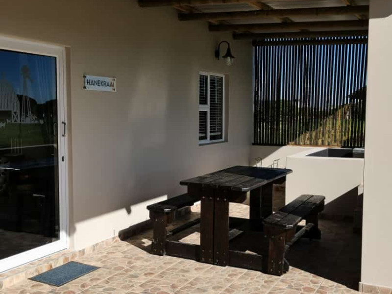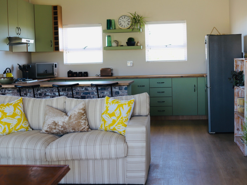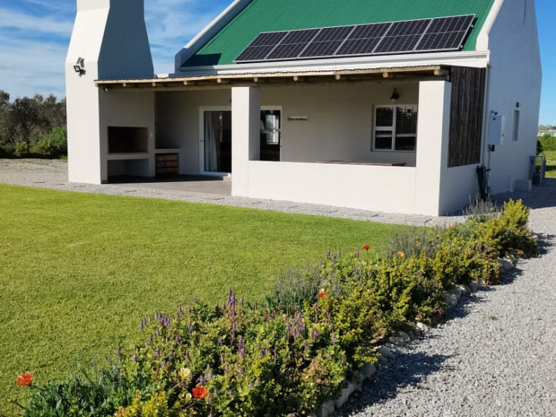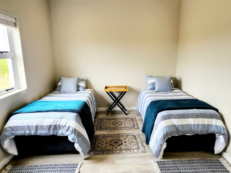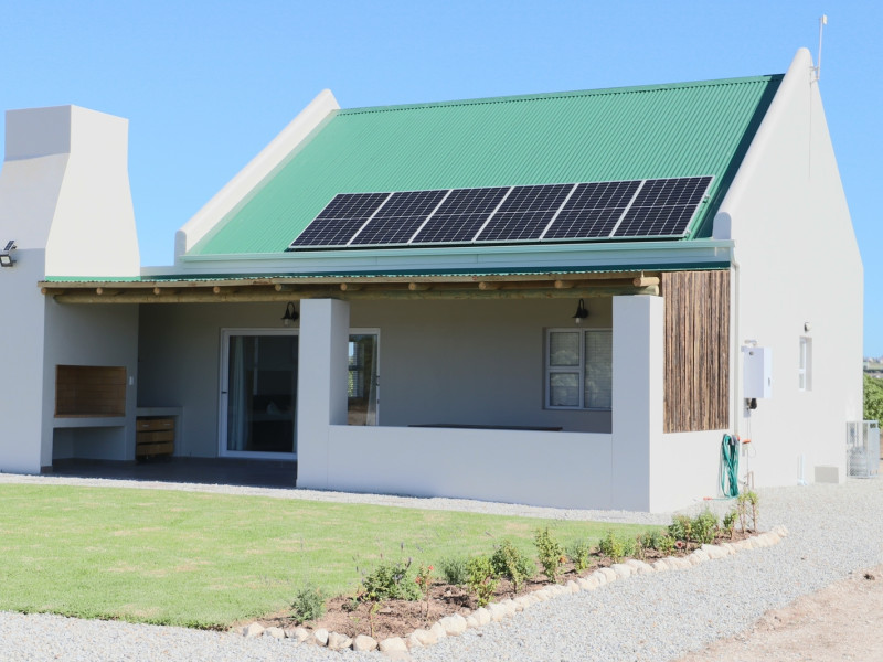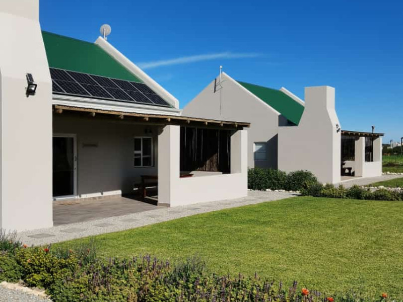 Off-Grid Cottages (Douvoordag and Hanekraai) are 2-bedroom self-catering cottages that sleeps 5 guests and has 2 bedrooms. There is solar and gas so power failure is not a problem. One with a queen-sized bed and the other with 2 single beds. The living room has a sleeper couch that sleeps 1 person.