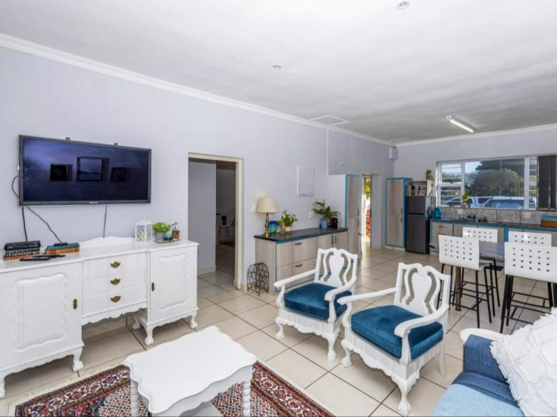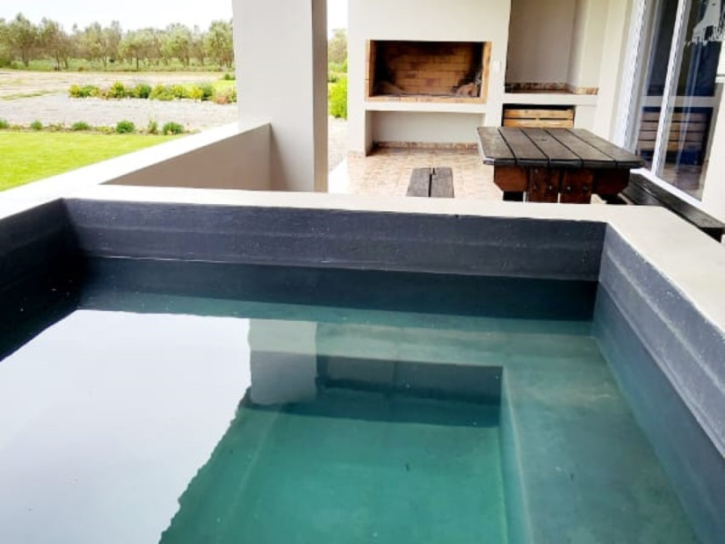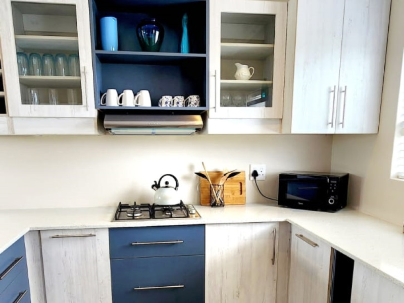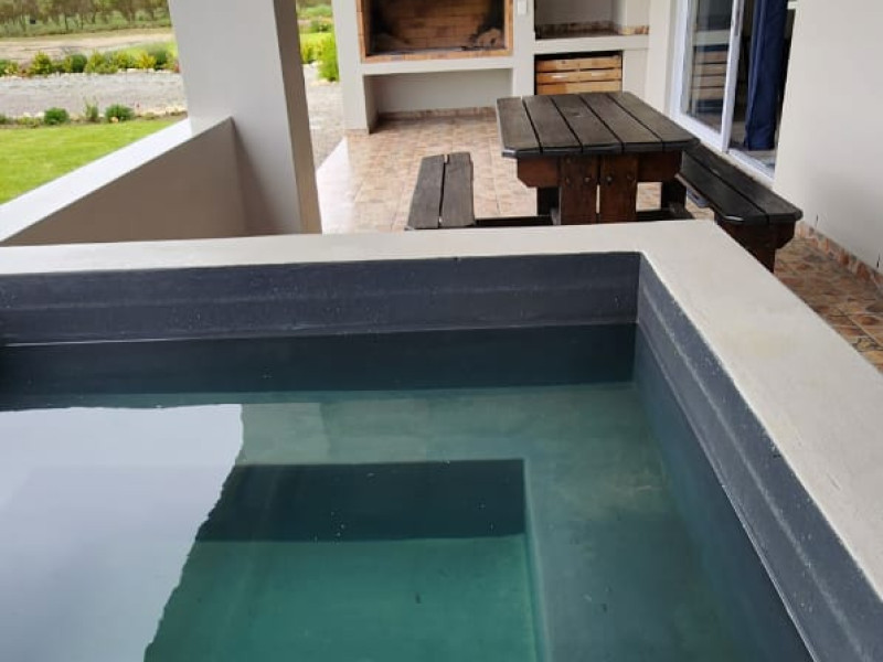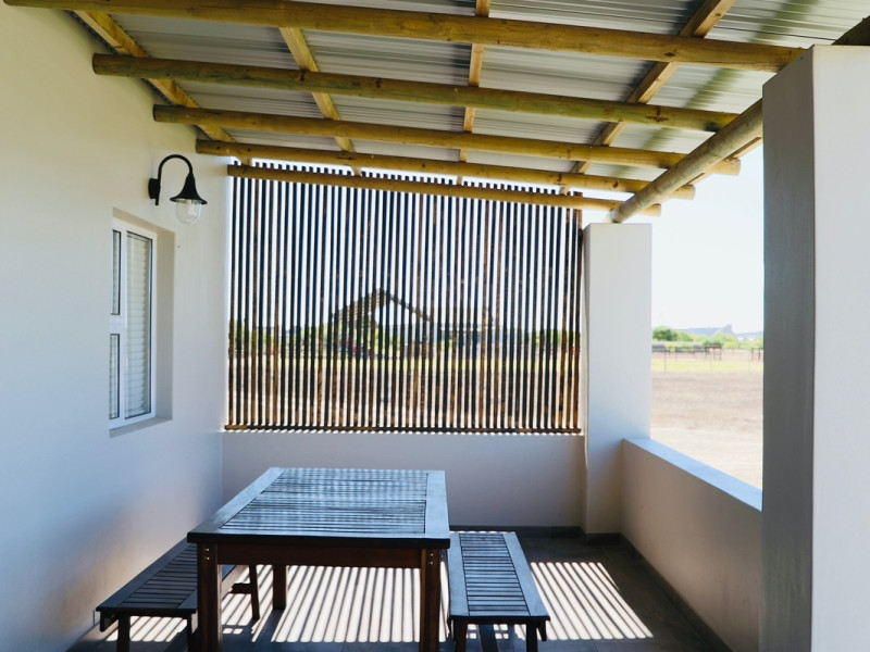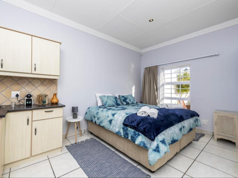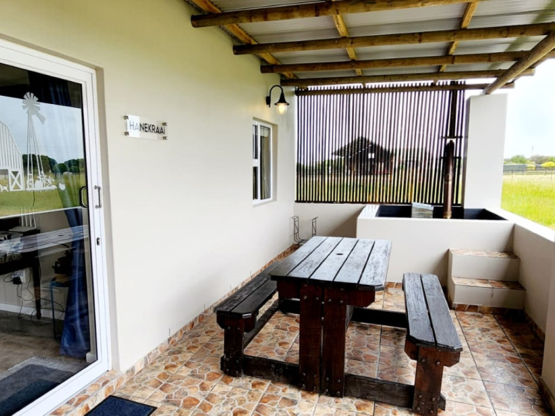 The cottage is completely separate from the owner's residence. Outside there is a large covered veranda with a table, chairs, and braai facilities. Braai facilities on the veranda make for a wonderful gathering with friends and family.