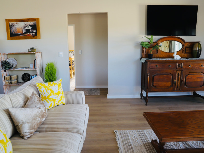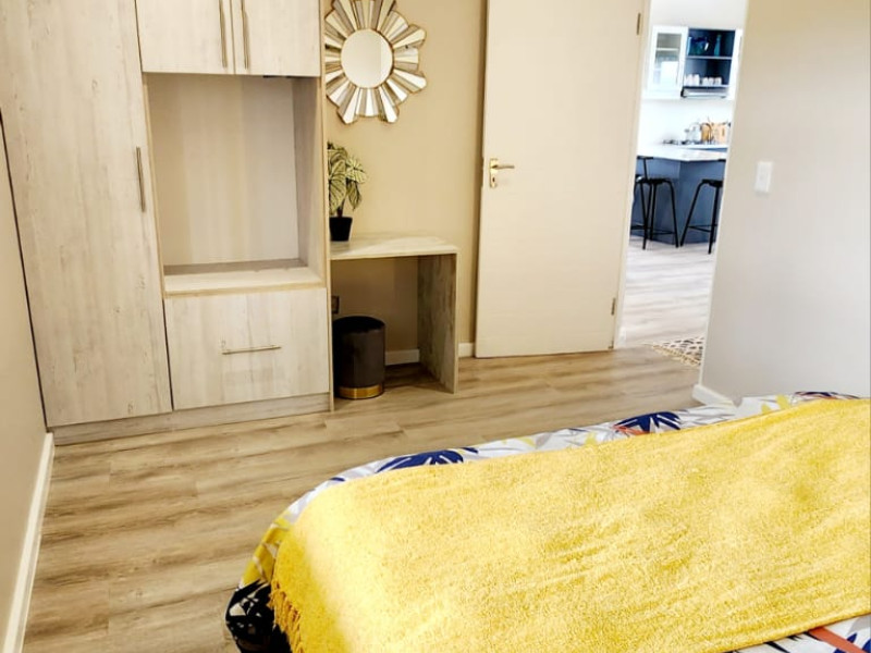 The Country at Sea Flatlet (Dagbreek) can comfortably accommodate 3 people and comprises of a bedroom furnished with a king-size bed. The lounge has a comfortable sofa bed that accommodates 1 person. All linen and bath towels are provided.