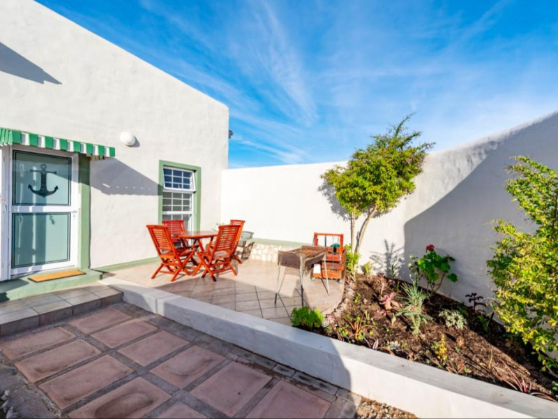 The flatlet is attached to the garage of the main house. Outside, is a courtyard with a table and chairs as well as braai facilities.