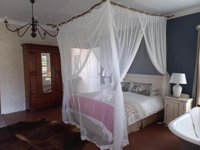 Our luxury self-catering suite "the Wakkerstroom Villager" is perfect for a honeymoon, anniversary or a getaway for two. It has a beautifully dressed queen-sized bed with mosquito net, percale linen and down duvet. There is a shower en-suite and a Victorian claw foot bath in the bedroom window. The compact kitchenette has a two-plate gas hob, bar fridge, microwave and even a coffee pod machine. Its private boma has views of historic Ossewakop Mountain.