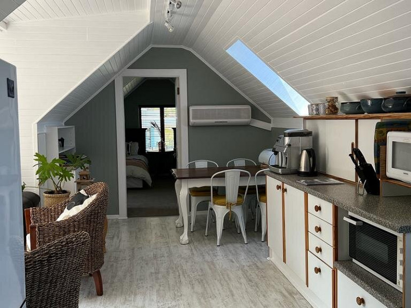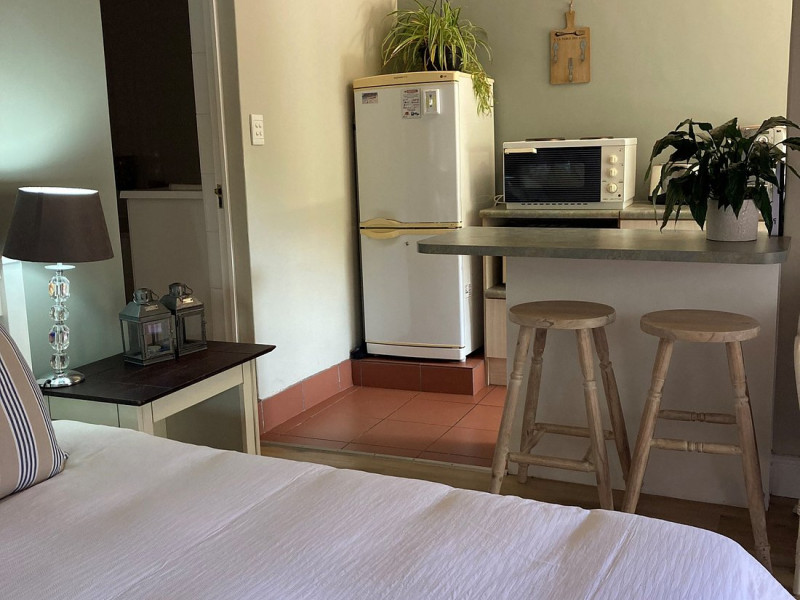 This room has a fully fitted kitchenette with a breakfast counter and a lovely enclosed, covered patio. We have a pool area with a solar-heated pool for guest use. Rooms are serviced daily (except on weekends and public holidays) and we offer a laundry service.
