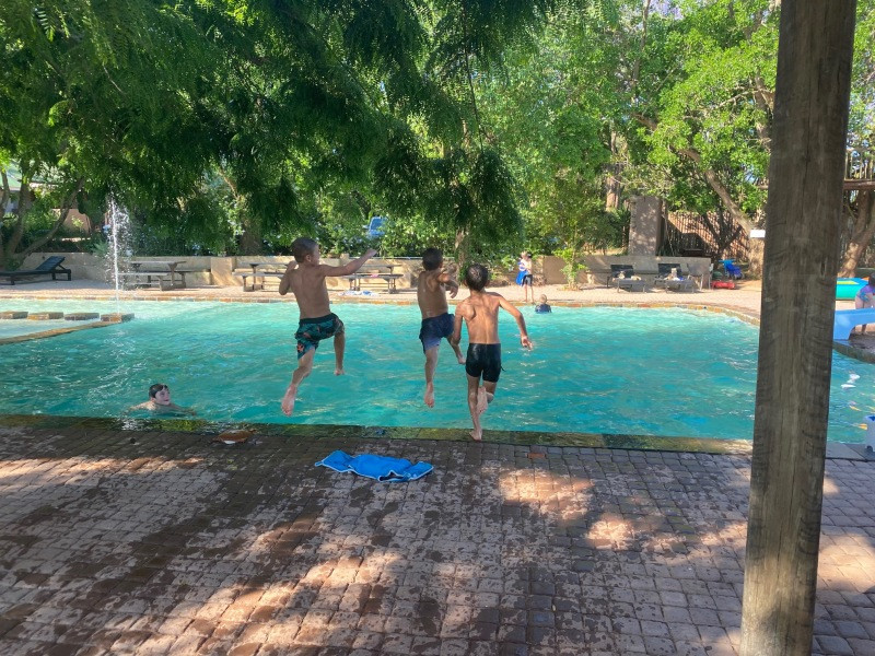 We have a Large Swimming pool with a slide and play area for the kids, we also have a Lapa called "Fiesta Farm" next to the swimming pool, which serves breakfast at an additional cost.