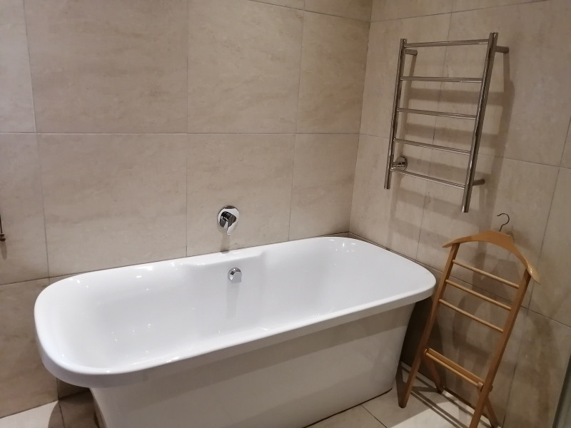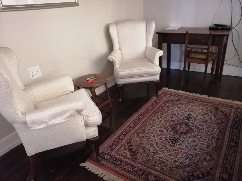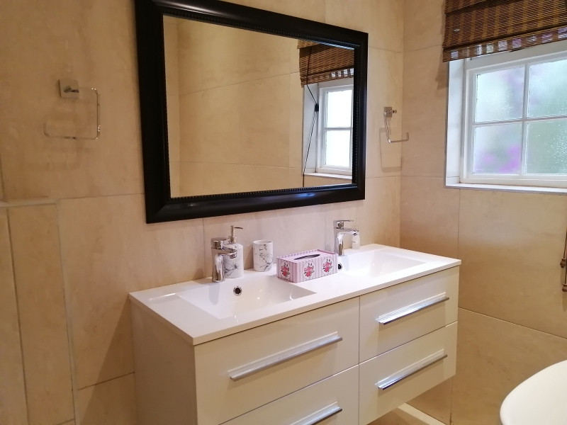 Fiore's Garden Cottage is modern, comfortable, newly built and beautifully furnished. The large bedroom consists of a queen bed, bedside tables and lamps and ample closet space. The en-suite bathroom is fitted with a bath, modern shower, twin basins and toilet.