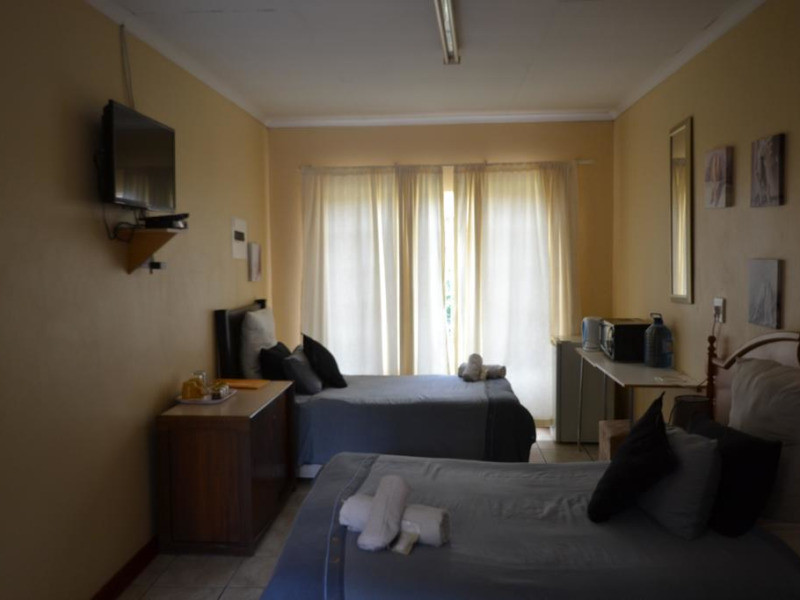 All the rooms are equipped with bar fridges, televisions with M-Net and DStv, Internet access and secure undercover parking with a security gate. We offer bed and breakfast accommodation and dinner can be arranged on request. There is a clear swimming pool for the hot days of summer for all guests to enjoy.