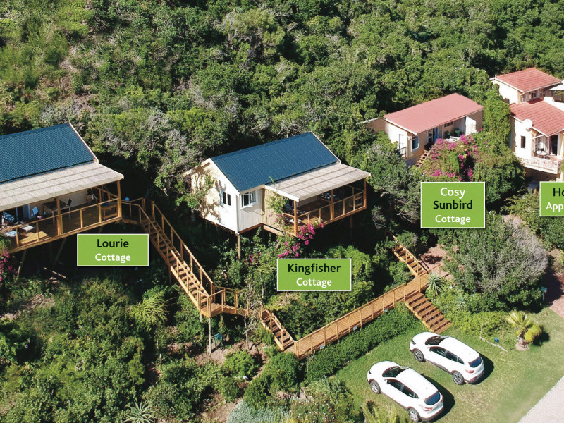 JustFor2 lies in a very quiet setting in Wilderness and borders Garden Route National Park. The Indian Ocean with its splendid beaches is a mere 2-min drive. We offer 4 self-catering accommodation units, all just for 2 people and fitted with a king-size bed, en-suite with kitchenette.