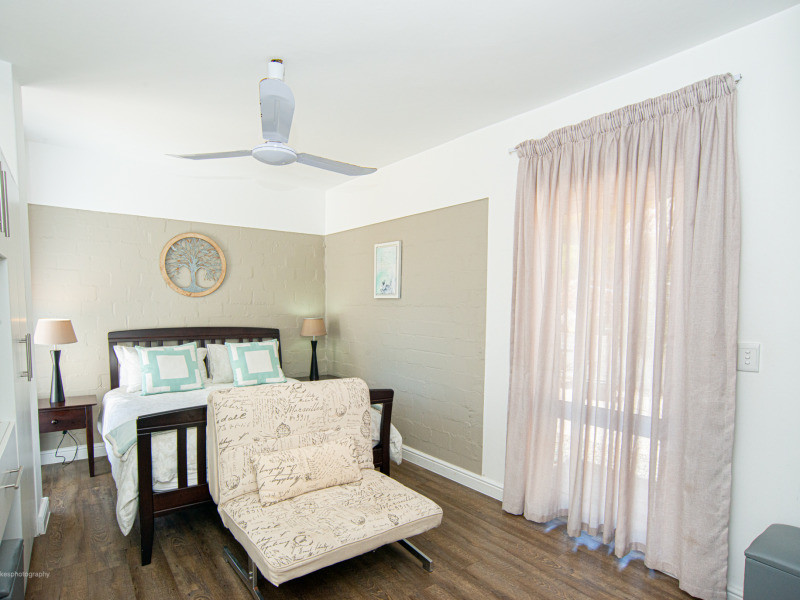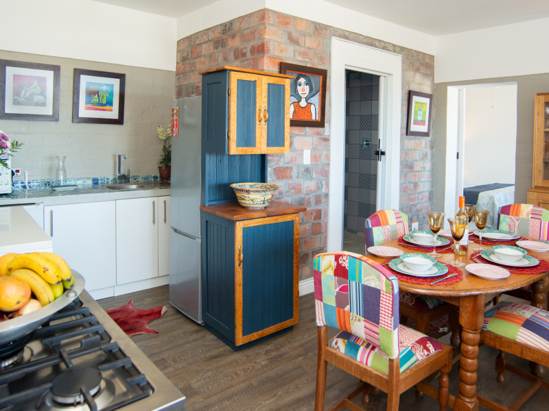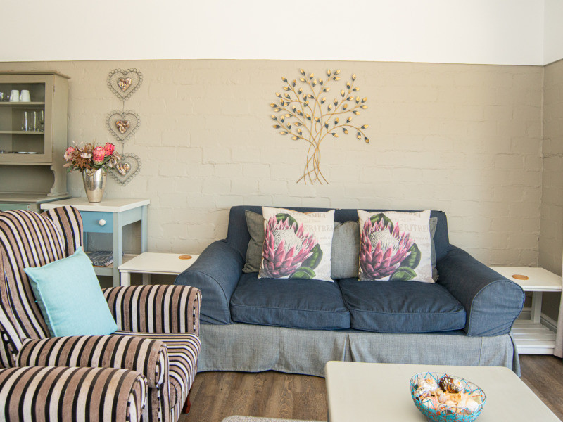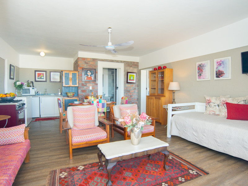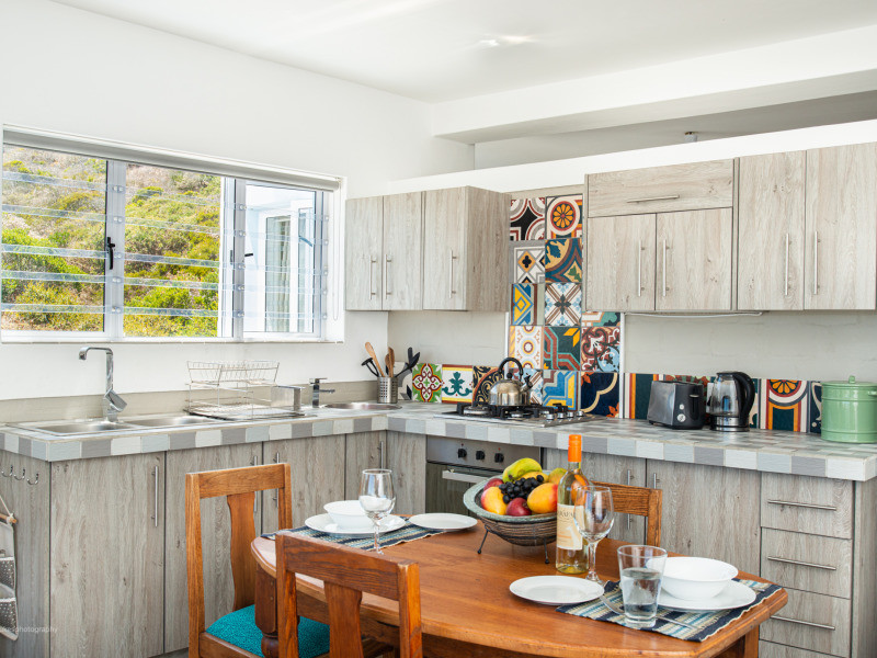 The FYNBOS LUXURY unit is well equipped with all the necessary utilities you will need to enjoy a comfortable self-catering stay. It consists of a fully equipped kitchen with stove and oven, a dining room table seating 4 people and a small sitting area with a fireplace. The bedroom has a Queen Bed and a single sleeper couch ideal for a child. The en-suite bathroom has a bath and shower. There is an outside braai facing the green Fynbos area, exclusively for the use of Fynbos guests. Booking the adjacent Seashells apartment as well and opening the interleading door between the two apartments, makes it ideal for a family of 4 or 5 people.