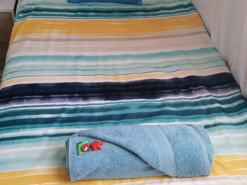 The main bedroom is furnished with a double bed and has an en-suite bathroom with a shower and a toilet. The other two rooms each contains 2 single beds, and share the use of the second bathroom with a bath. The kitchen is equipped with a stove and oven, a fridge, microwave and toaster, as well as tea and coffee-making facilities.