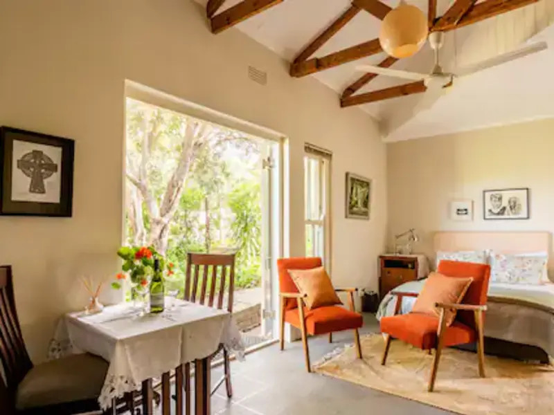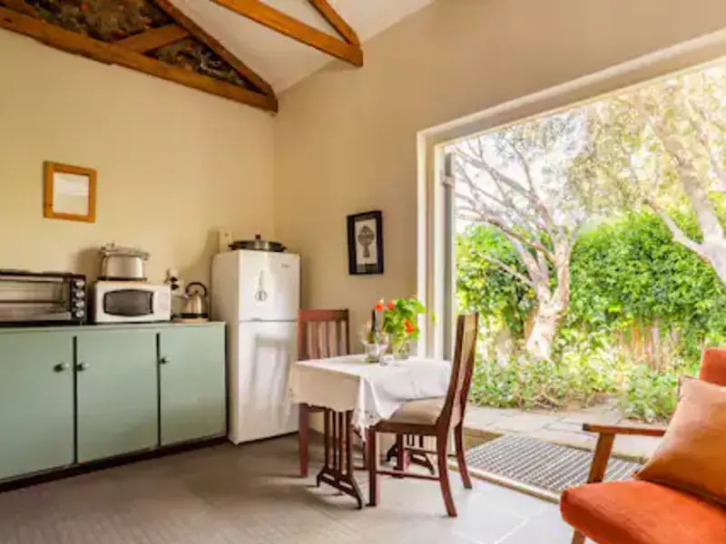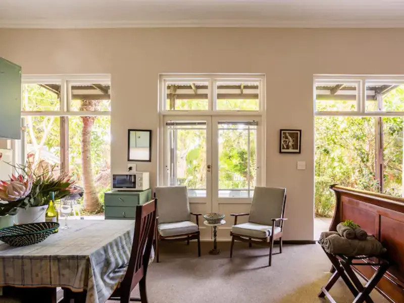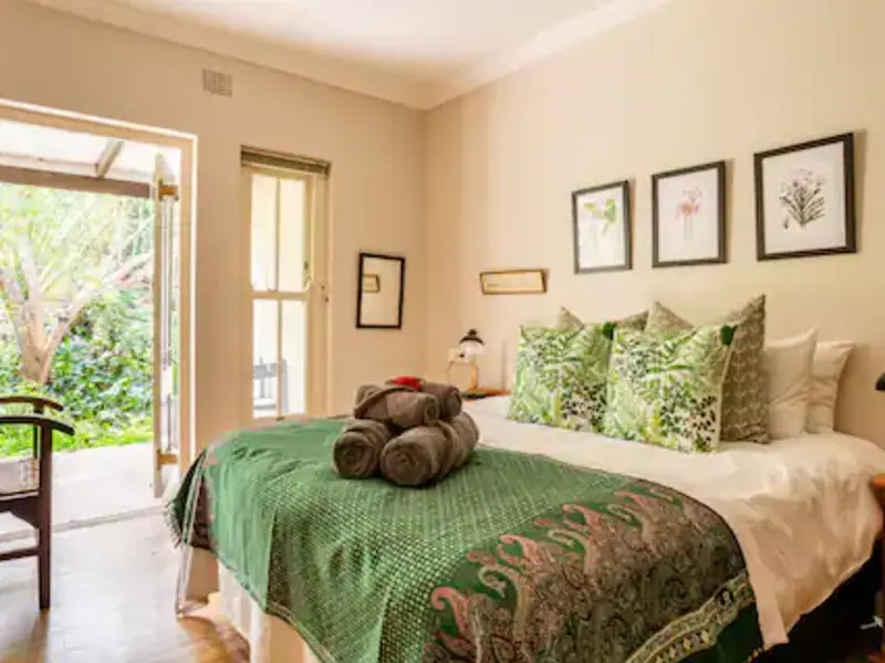 Our five luxury double rooms are set in a lush garden filled with the song of a variety of birds in the huge trees around the house. All rooms are equipped with 100% cotton linen and towels and a coffee/tea station with homemade rusks. Each room has a separate private entrance and direct access to the garden and its own private patio. Free Wi-Fi is available in all areas. Ample secure parking is available on the premises. There are electric blankets and overhead fans to enable a comfortable stay.