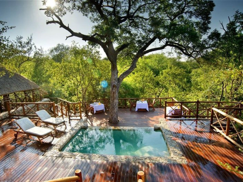We are tucked away in the most beautiful bushveld of the southern Kruger National Park region, which forms the backdrop to a spectacle of sounds, smells and sightings. Decks are built around the existing Marula and other bushveld trees, creating a centre stage for joining our luxury bush chalets by elevated walkways for your convenience.