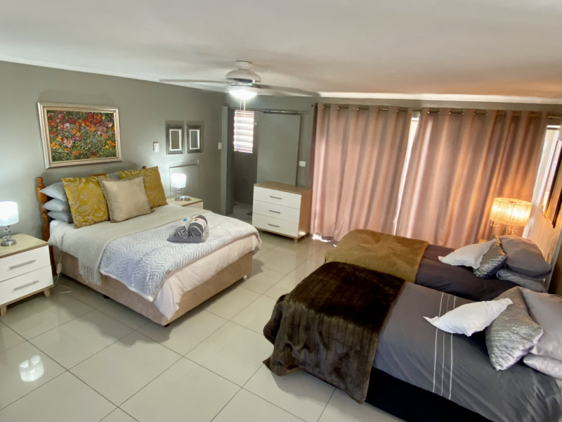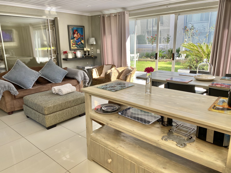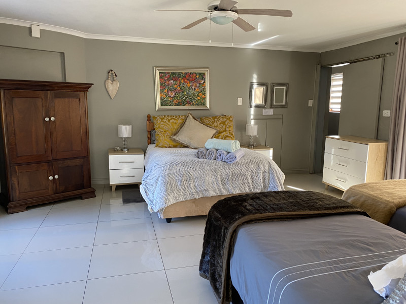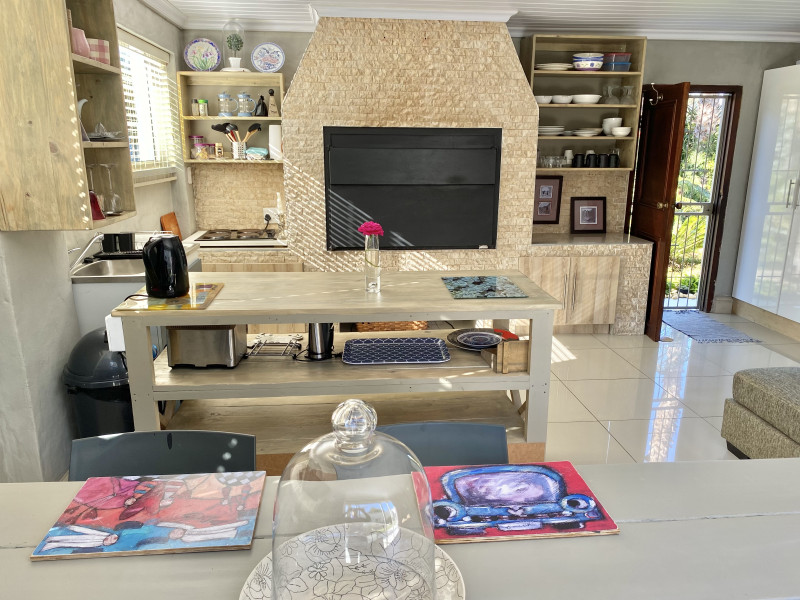 Littlefern is a cosy, well-equipped apartment attached to the main house and has its own private entrance with secure parking. It consists of one large and spacious family bedroom with 2 single beds and 1 double bed. The apartment has an open plan living space with indoor braai facilities, an automatic washing machine and a kitchen with a 2 hob gas stove, microwave and fridge. The wifi is connected to an inverter. The CBD is 1,2 km from the apartment and we are 100 meters from the Outeniqua mountain entrance.