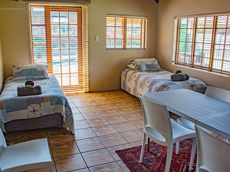 We have many fine restaurants (Longhorn, Spur, Ocean Basket) and fast food outlets in Langenhovenpark, as well as several shopping centers of which two are less than 2 km from us. Melsetter’s has a lovely seasonal swimming pool. Free WiFi is available to our guests. Each room has its own private entrance as well as a private bathroom with shower and is equipped with an air-conditioner, microwave oven, flat-screen TV with Smartbox (Showmax and YouTube) and OpenView satellite channels, kettle, tea tray, cutlery, and crockery.