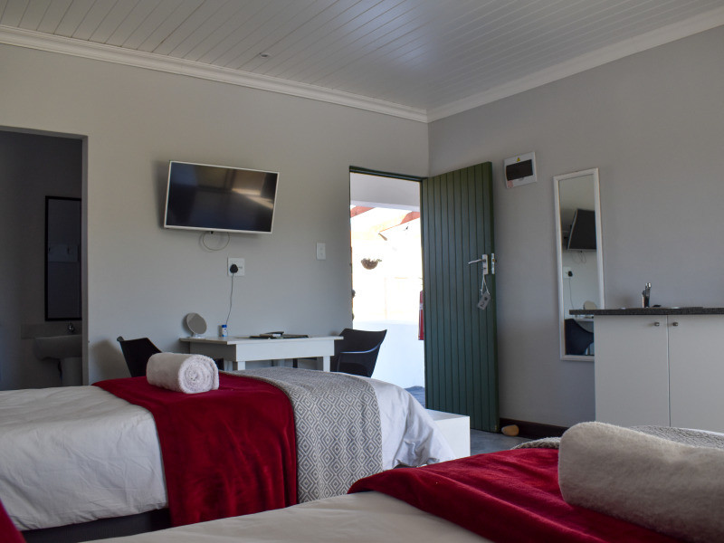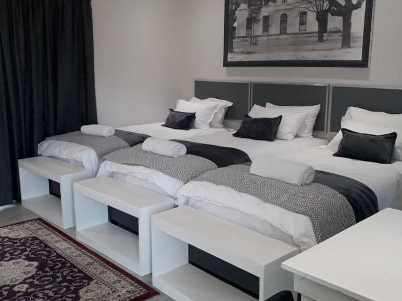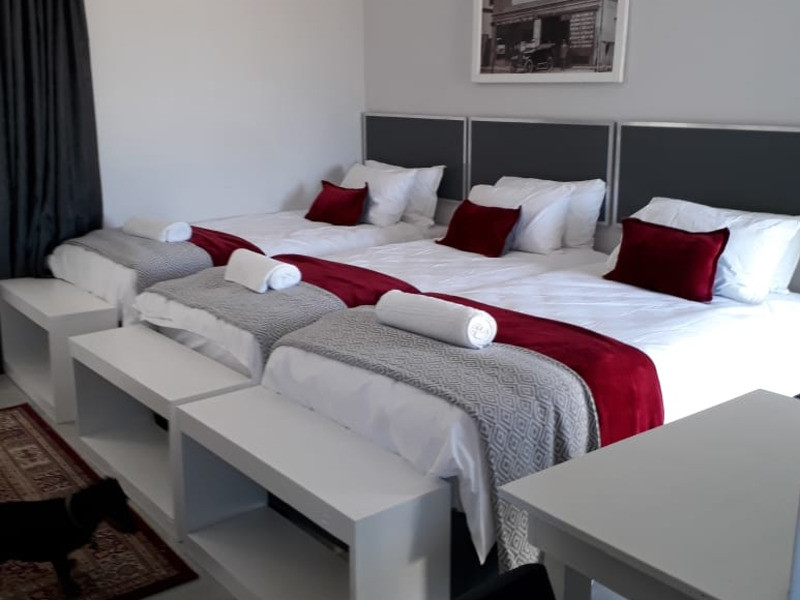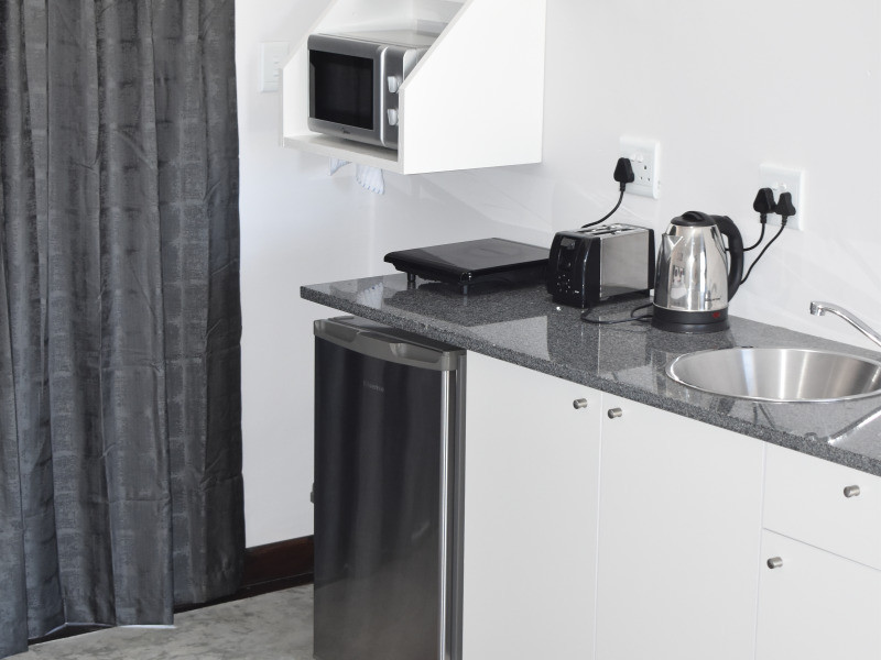 There is a kitchenette equipped with basic self-catering facilities in each unit. Some of the bedrooms have their own braai areas while the remaining bedrooms make use of a communal braai area. Netflix and Open View are available, but feel free to bring your DStv decoder and plug it in. We have a conference room, secure parking, and free Wi-Fi. During loadshedding at night, we have a generator running.