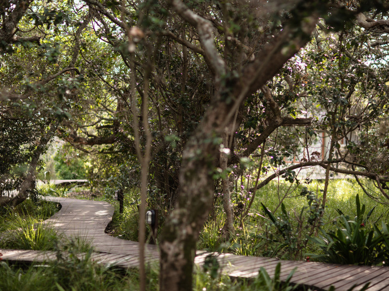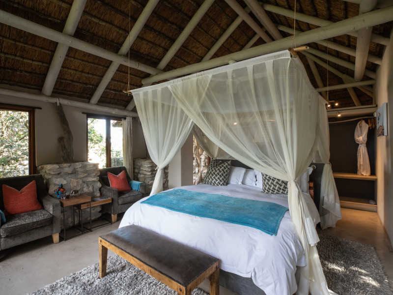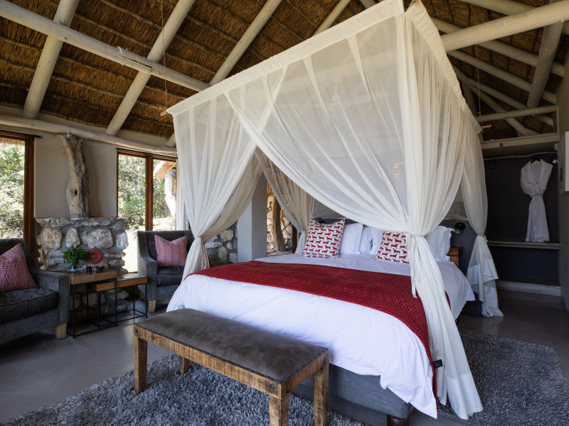 Boardwalks under a canopy of trees lead to the lounge where drinks and meals are shared outdoors or by a fireplace that will warm your soul. A heated plunge pool overlooking the mountains is a favourite place to spot your favourite birds. And as evening falls, you will witness the exquisite colours of the sun setting and the glorious expanse of the star-filled South African sky.