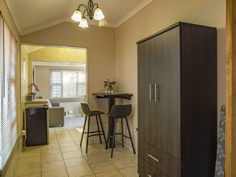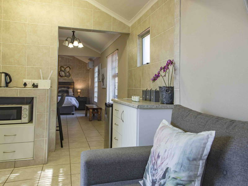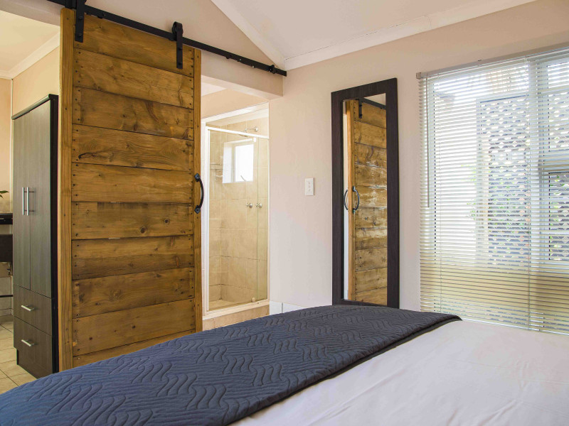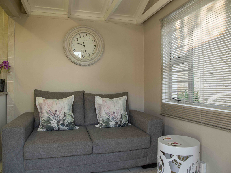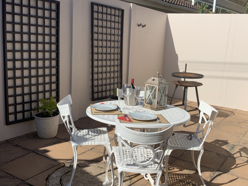 Contemporary and secluded studio-style cottage featuring a private courtyard with a built-in braai. Enjoy a complete DSTV bouquet, wifi, and air conditioning for a comfortable stay.