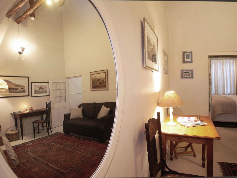 You will immediately feel at home as you slow down to the relaxed pace of country life and take time to experience simple beauty, the attention to detail, the small unexplained things, the odd-shaped rooms – the garden with quirky stone men – the warm and inviting lounge leading onto a large shaded garden with swimming pool, bedrooms with French doors and shutters opening into the garden – the harshness of the Karoo that gives you grace in the evening and gentleness in the morning.