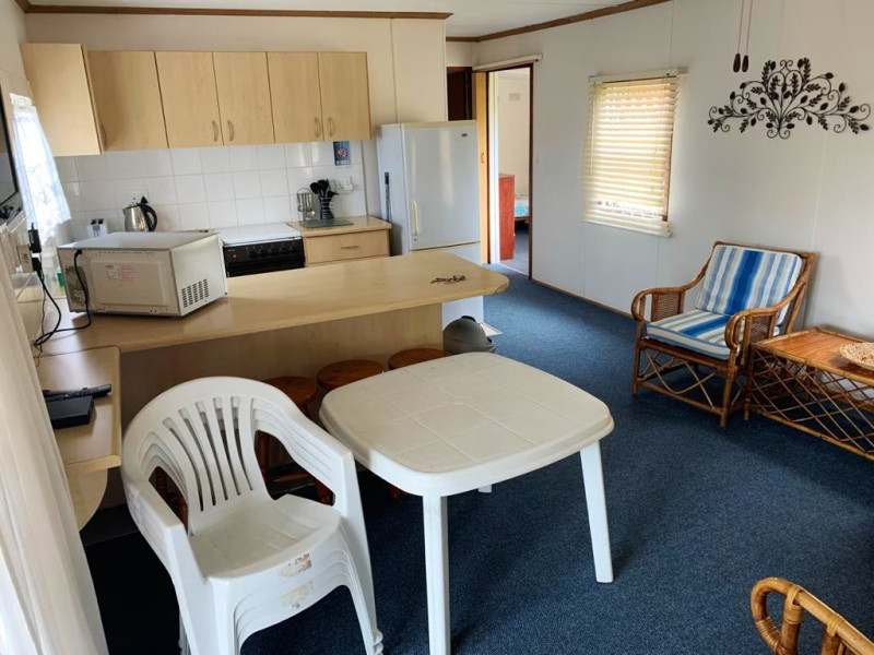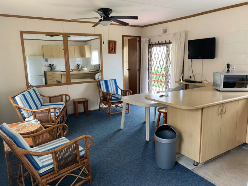 The 4-sleeper Timber Log Cabins and 4-sleeper Chalet each comprises 2 bedrooms that share the use of a bathroom. The units each have an open-plan kitchen, dining area, as well as a lounge with TVs with OpenView. Guests are welcome to bring their own decoder, remote and smart card for DStv. The living areas open onto a deck with braai facilities. The 2-sleeper Little Log Cabin comprises 1 bedroom with a queen-size bed and makes use of a bathroom with a shower. The unit also has an open-plan kitchen and a breakfast nook.