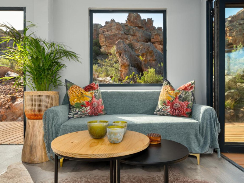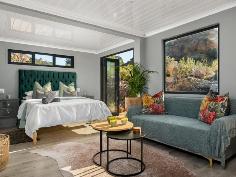 Nestled in between two mountains in the well-known and popular climbing area of Rocklands South Africa, lies the self-catering cabin of the Rocklands Eco Retreat. It is an environment-conscious guest accommodation tucked away in the Cederbergs, South Africa. The unit comes with a terrace with mountain views, a kitchen with a fridge and a stovetop, and a private bathroom with a bidet. There is an indoor and outdoor seating and a dining area. Guests at the cabin can enjoy hiking nearby, and go for a sunrise yoga session on the rocks.