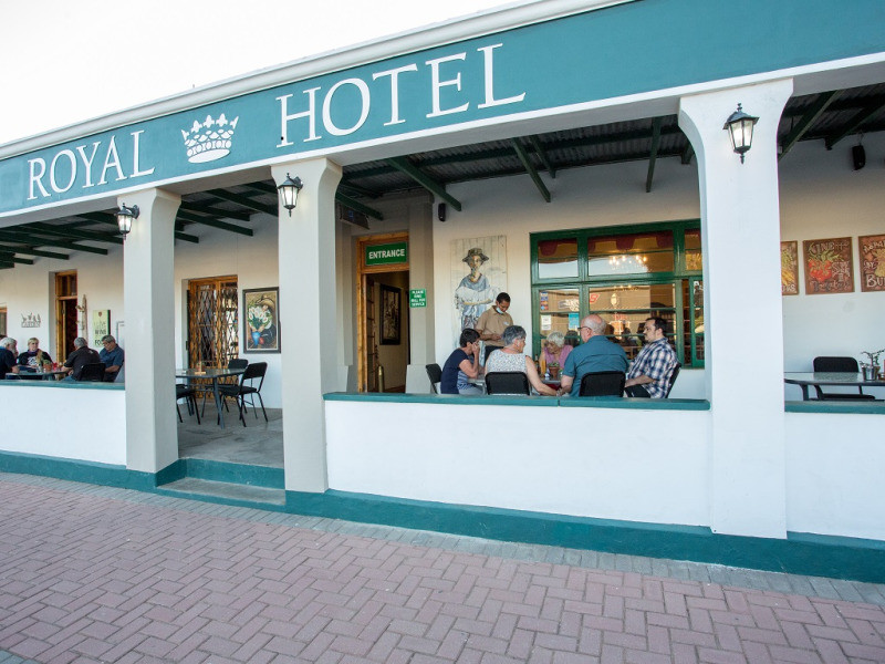 Experience a slice of country life by relaxing on the street facing "stoep" (verandah) whilst enjoying refreshments or a meal and observing the typical small town activities. Steytlerville is the undiscovered gem of the Karoo in the Eastern Cape, about two hours from Port Elizabeth and two and a half hours from George. The Royal Hotel is en-route between Addo Elephant National Park and Oudtshoorn, forming part of the well-known Cape to Addo Tourist route. Steytlerville also lies at the Eastern Entrance to the World Heritage site of The Baviaanskloof.