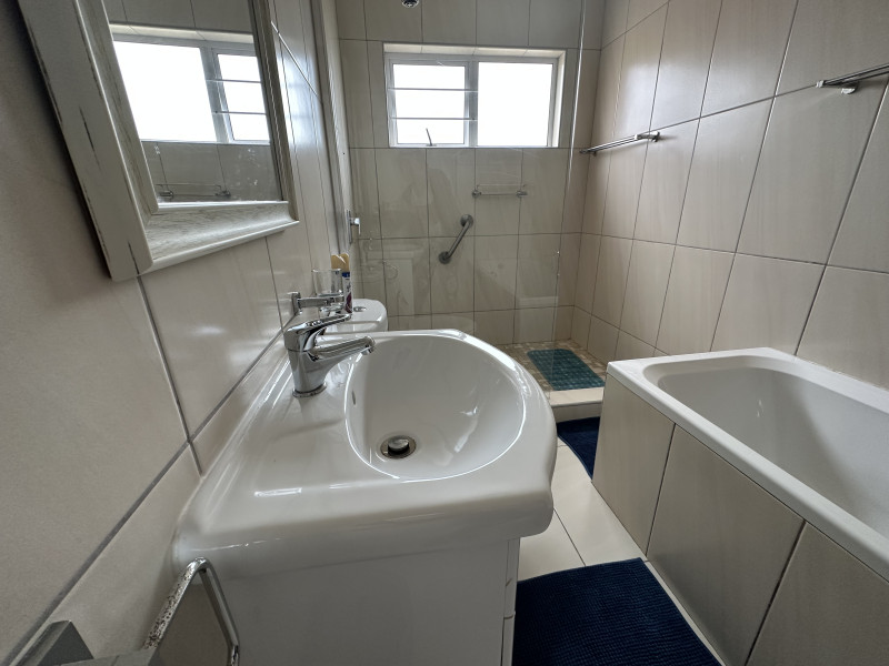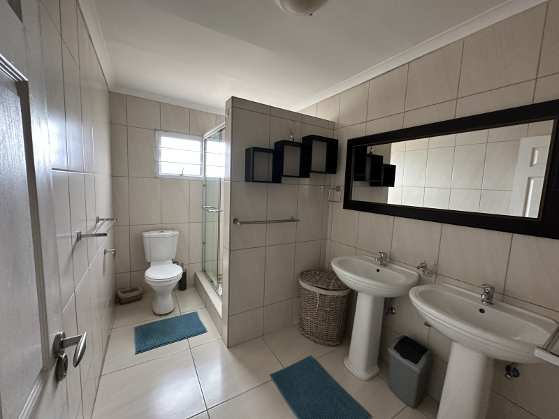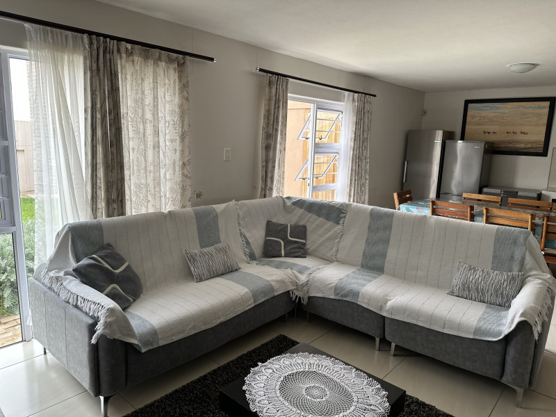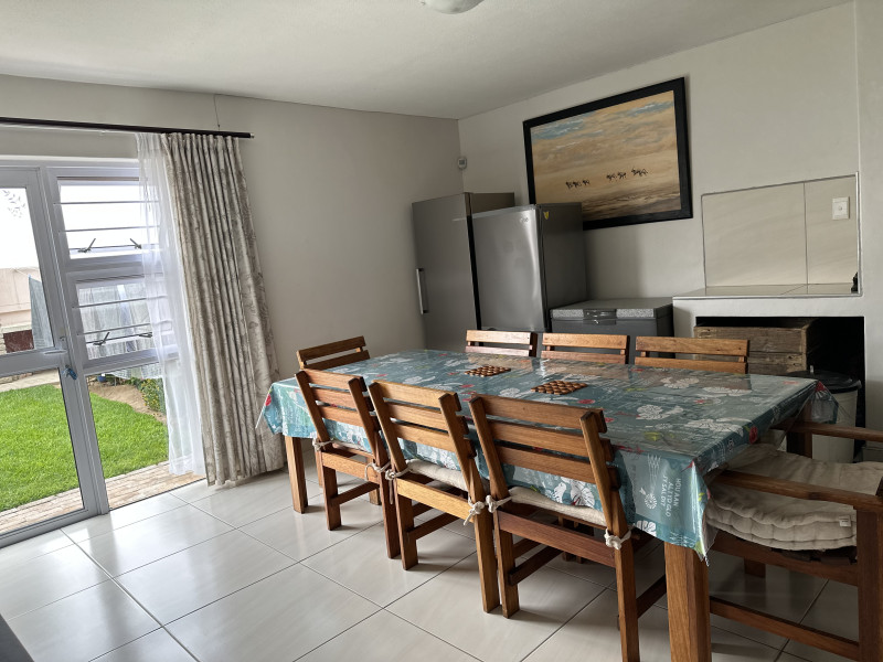 The open-plan kitchen is equipped with a stove and oven, a microwave, a fridge, a freezer, a washing machine as well as tea-and-coffee-making facilities. Meals can be enjoyed in the living area. The living area is equipped with a built-in braai, and the lounge has a TV, with access to Netflix and other online platforms.