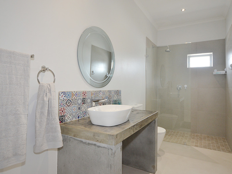 Situated in the picturesque seaside town of Yzerfontein, Sea Glimpse Yzer is a lovely self-catering apartment within easy reach of the beach and is perfect for guests seeking a relaxing getaway. This unit is attached to the main house but has its own entrance and facilities. This tastefully designed apartment can accommodate 6 guests and comprises 3 bedrooms and 2 bathrooms. The first bedroom is furnished with a queen-size bed and shares a bathroom with the second bedroom. The second bedroom is furnished with either 2 single beds or a queen-sized bed. The shared bathroom is fitted with a shower, toilet and washbasin. The 3rd bedroom is furnished with a queen-size bed and features an en-suite bathroom fitted with a shower, toilet and washbasin. Rooms are allocated in this order. Quality linen and bath towels are provided. The open-plan living area features a lounge, a dining area and a kitchen. The kitchen is equipped with an induction stove, air fryer, microwave, fridge, dishwasher, tea- and coffee-making facilities and cutlery and crockery. The lounge is furnished with comfortable seating, a built-in braai and a smart TV. Make use of the complimentary Wi-Fi, enjoy a meal at the outdoor dining area or socialize around the free-standing braai. Access to secure parking is available.
