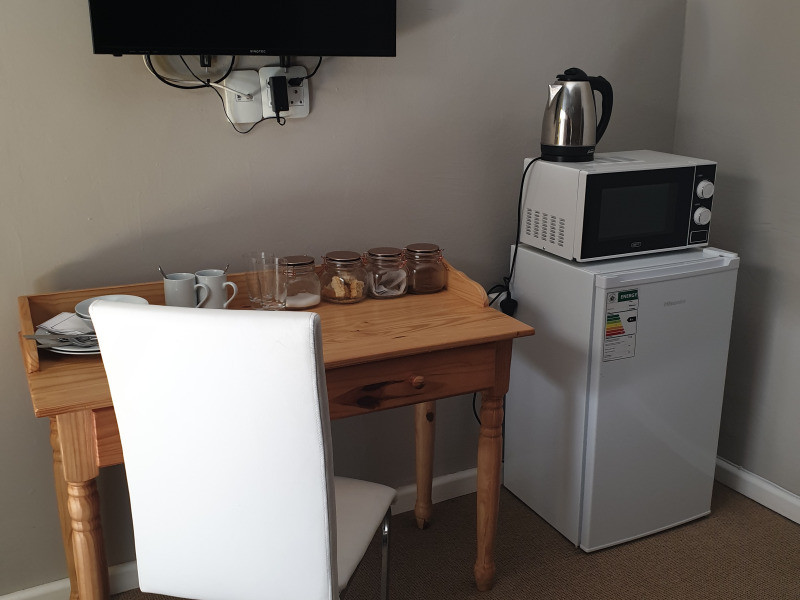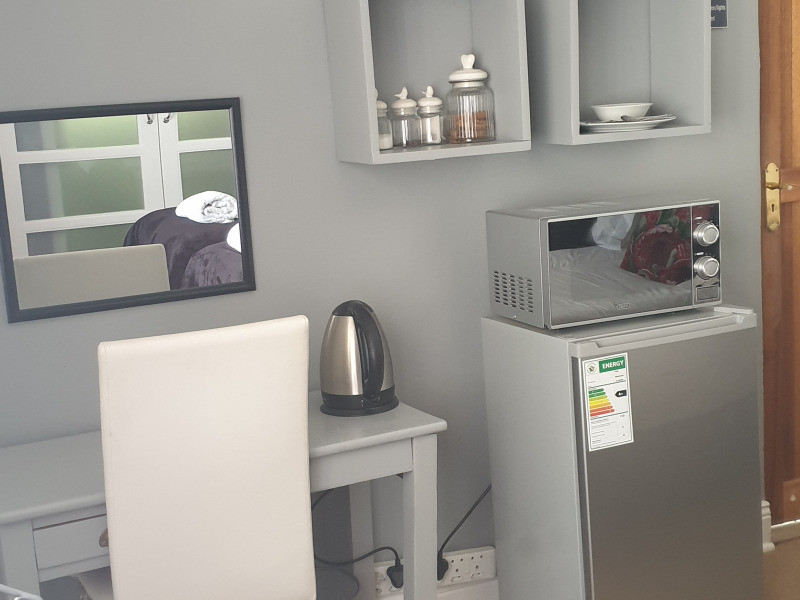 Two of the rooms each have an en-suite bathroom with a shower, while the other room has an en-suite bathroom with a shower and a bath. Each of the rooms is equipped with a microwave, a stocked mini-fridge with the essentials for a continental breakfast, a TV with DStv, Wi-Fi access, as well as a desk. The rooms also have alarm systems for extra peace of mind.