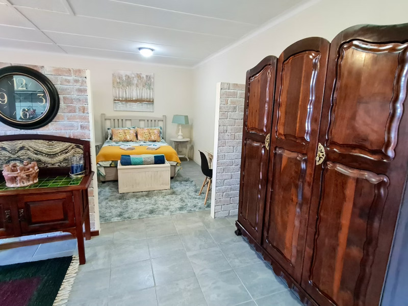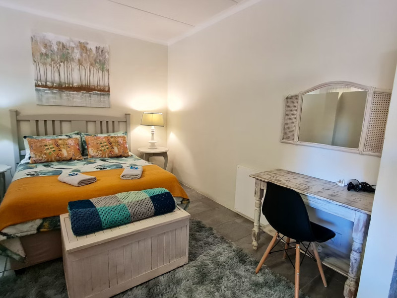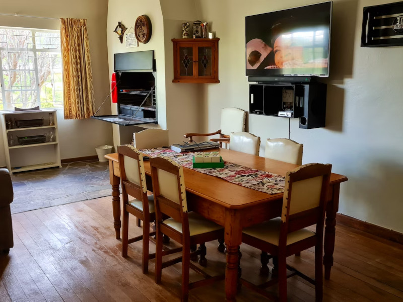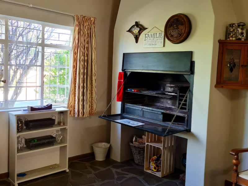 Accommodation is available in the Main House, the Cottage and the Settle - inn Apartment. The main house has a private entrance and comprises 4 bedrooms and a bathroom fitted with a bath, shower, toilet and basin. Three of the bedrooms are furnished with a double bed in each, and the fourth bedroom is furnished with 2 single beds. Other facilities include an indoor braai area, a lounge with a TV with the hotel packet DStv including KykNet 144, and a kitchen which is fully equipped with a stove, oven, microwave, toaster, fridge-freezer, and tea- and coffee-making facilities. Free access to Wi-Fi is provided.