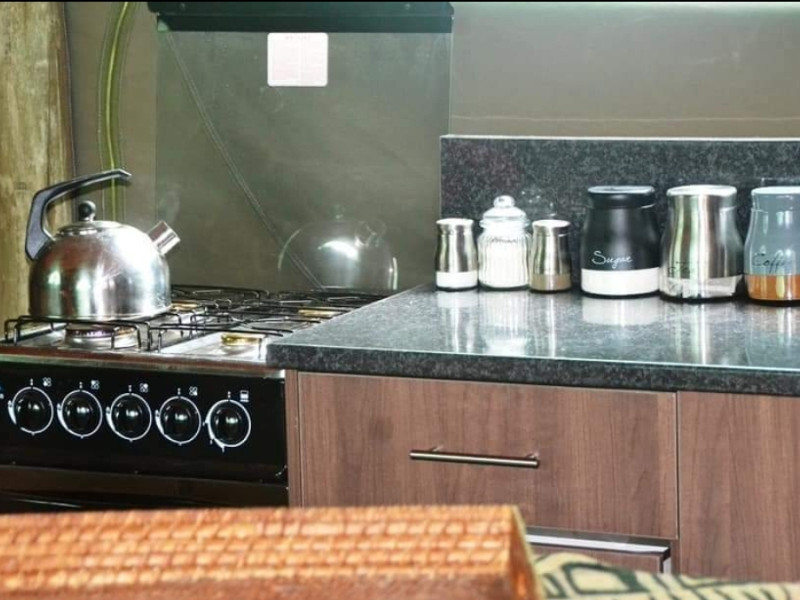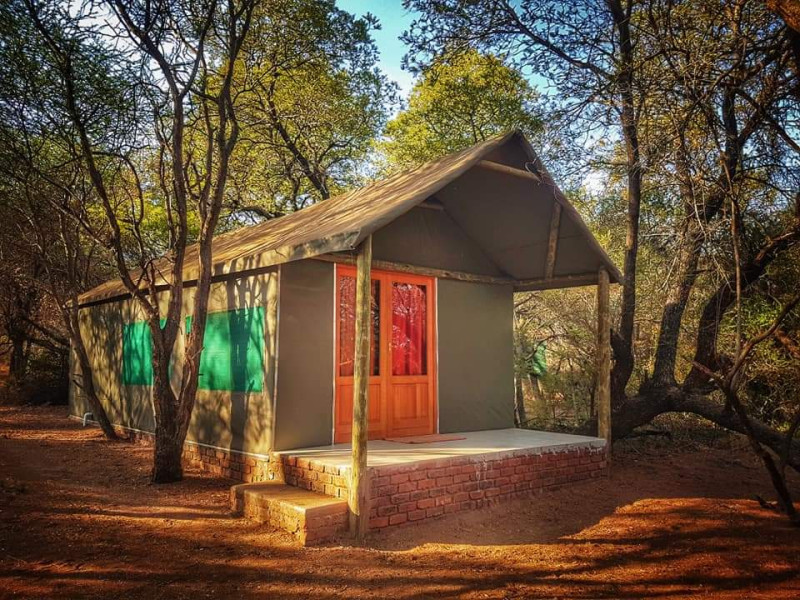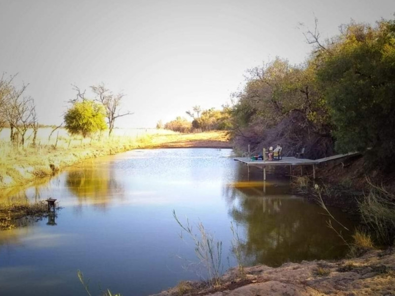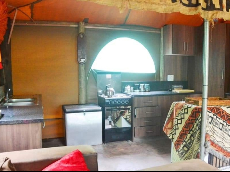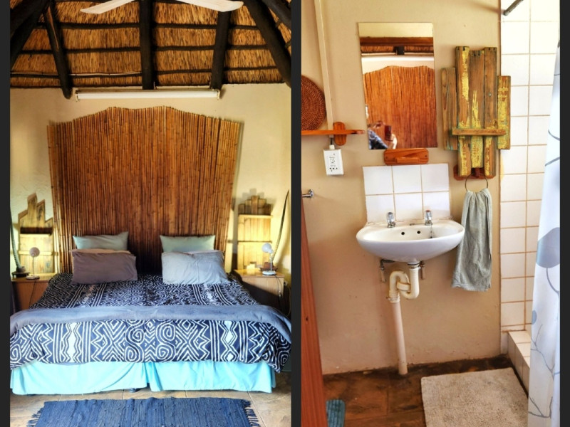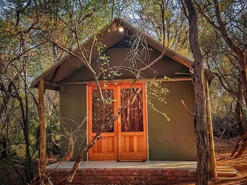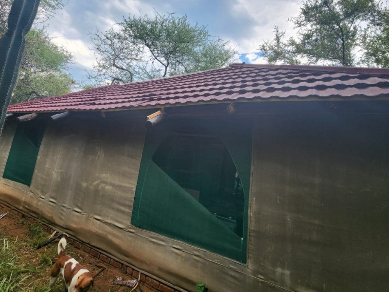 We also have a tent camp with 2 luxurious ensuite Chalets, and 1 "Bunker-tent" with 5 single beds for kids. Fully equipped kitchen, dining area, lapa with firepit, and a deck looking out to our dam next to the Mogol River. Fishing is allowed as well as pets.