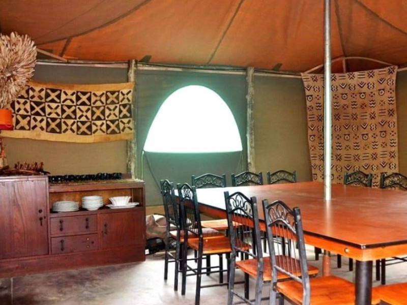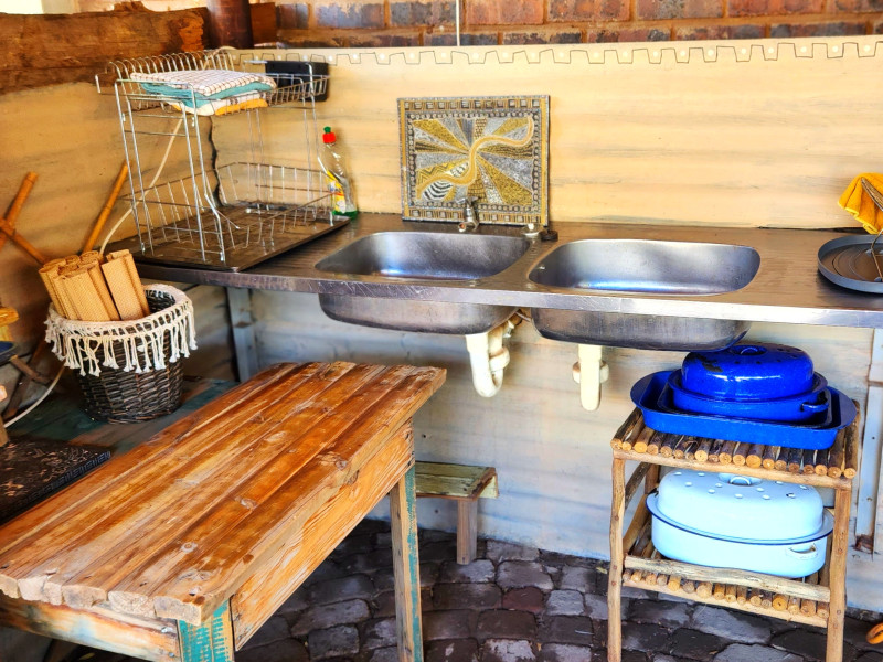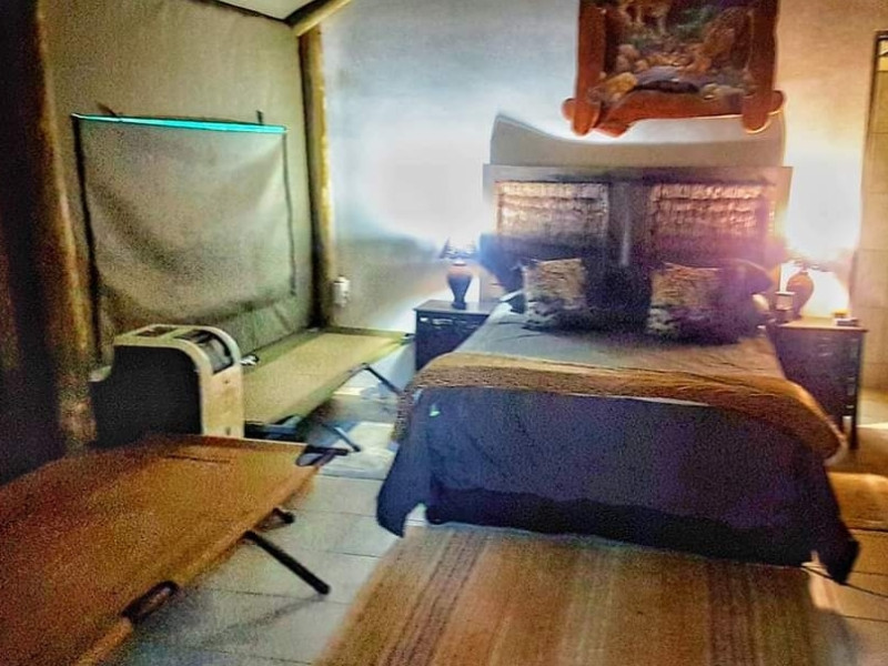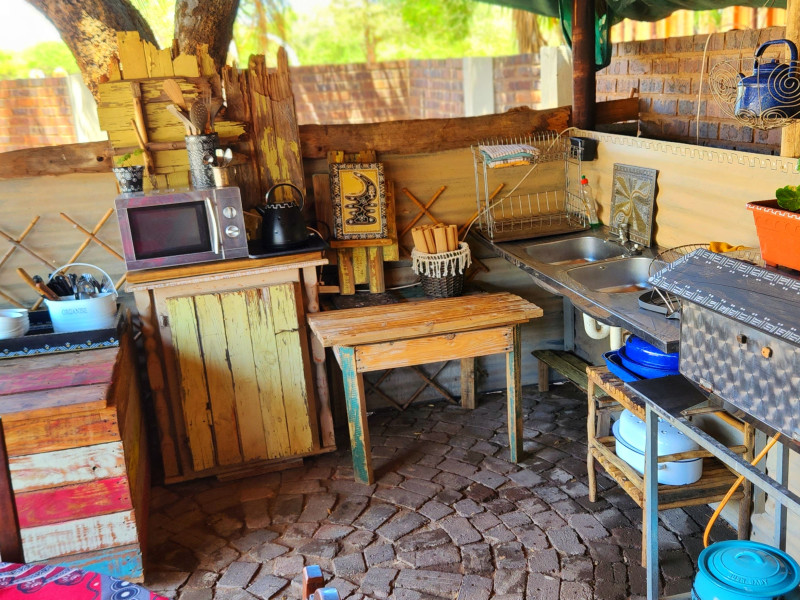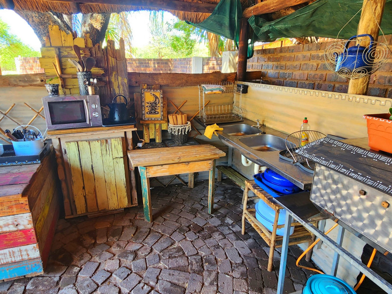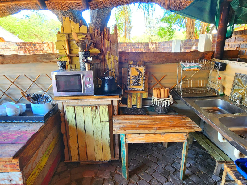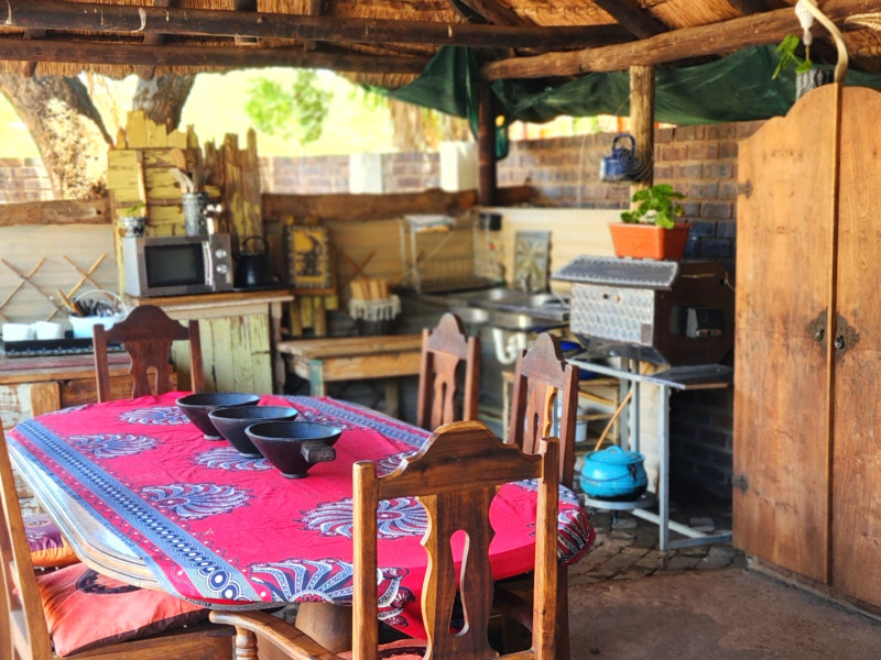 We also have a tent camp with 2 luxurious ensuite Chalets, and 1 "Bunker-tent" with 5 single beds for kids. Fully equipped kitchen, dining area, lapa with firepit, and a deck looking out to our dam next to the Mogol River. Fishing is allowed as well as pets.