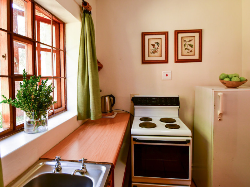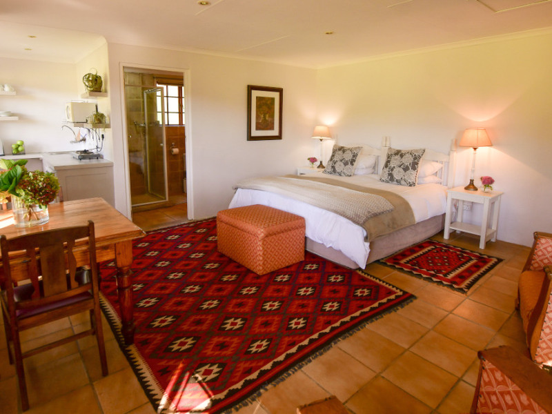 The Garden Cottage sleeps two people and has a kitchenette and a log fireplace. The bathroom has a shower and bath.All the rooms have extra-length king-size beds and are equipped with floor fans in summer, and electric blankets plus heaters in winter.