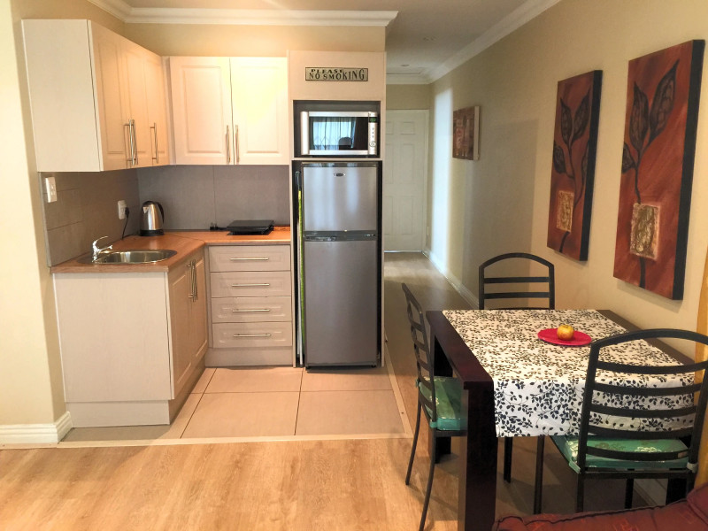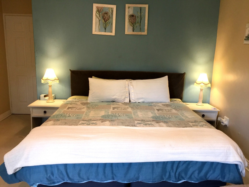 Protea Suite has a large bedroom with full DSTV, a spacious bathroom, a basic kitchenette and an eating area. The tranquil space is accessed through the lush garden, making it the perfect space for relaxation.