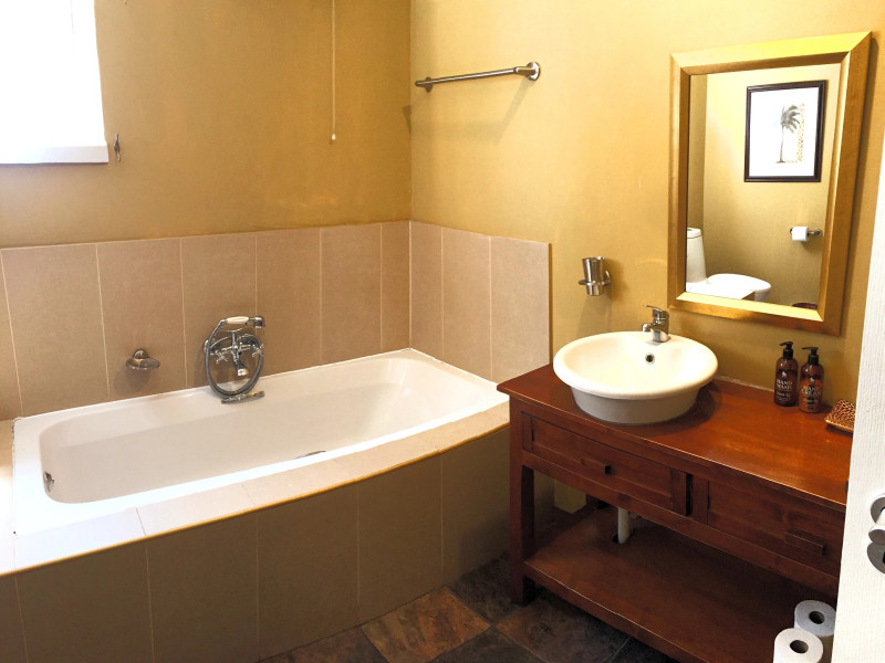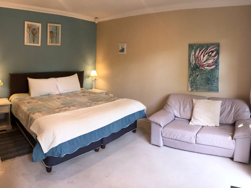 Sugarbush Suite is located upstairs. Guests can enjoy a large living space with a kitchenette, lounge, full DSTV, a spacious bathroom and a bedroom with a king-size bed that can be rearranged into twin beds on request. The balcony has stunning views of the Sugarbush Nature Reserve.