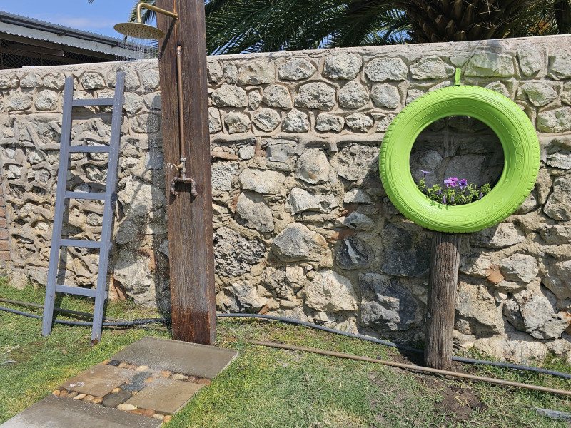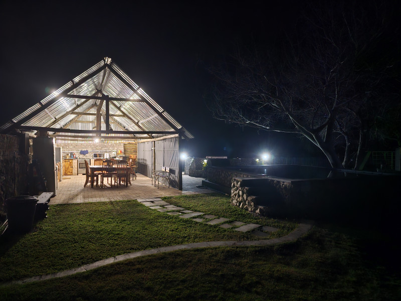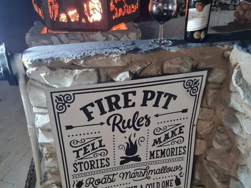 We have a beautiful fully Equipped Outdoor Communal Kitchen and Dining Area. With a Fridge/Freezer, Grill, Microwave oven, Toaster, Air Fryer etc. Samsung Flatscreen TV with the full DSTV Bouquet is also available. For use by all guests. Enjoy a swim in our Plunge Pool or a Sundowner by our Fire Pit/Boma.
