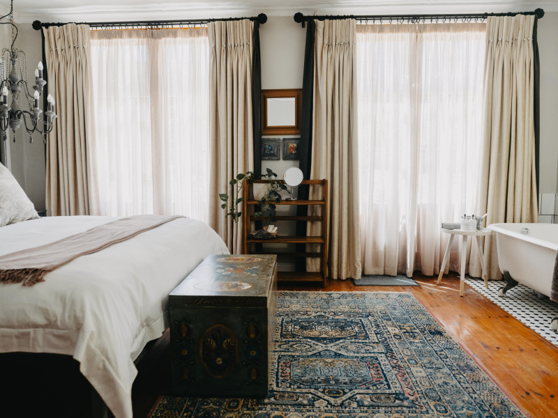 The Bethesda Guesthouse offers luxury accommodation in the heart of Nieu-Bethesda village. All our rooms are individually decorated and have doors leading outside. Comfort and detail are of the utmost importance with extra-length king-size beds, white percale linen, plush towels and quality amenities. Our team is ready to welcome you with warm Karoo hospitality.