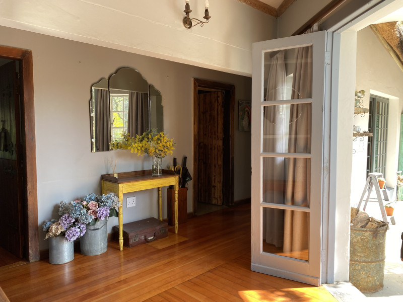 Nestled in the serene countryside along the banks of the Mpofana River, this enchanting 7-bedroom thatch manor holiday home is a true haven for those seeking a tranquil retreat. With a capacity to comfortably sleep 16 guests, this expansive estate offers more than just a place to rest your head. Its picturesque location grants breathtaking views of the lush valley, making it an ideal escape from the hustle and bustle of city life. Guests can unwind in the inviting swimming pool, sip cocktails, or relax in the cosy lounge. The verandah beckons with its charm, providing a perfect spot to soak in the natural beauty. With 6 bathrooms and a fully equipped self-catering kitchen, every convenience is at your fingertips, ensuring a delightful and memorable stay.