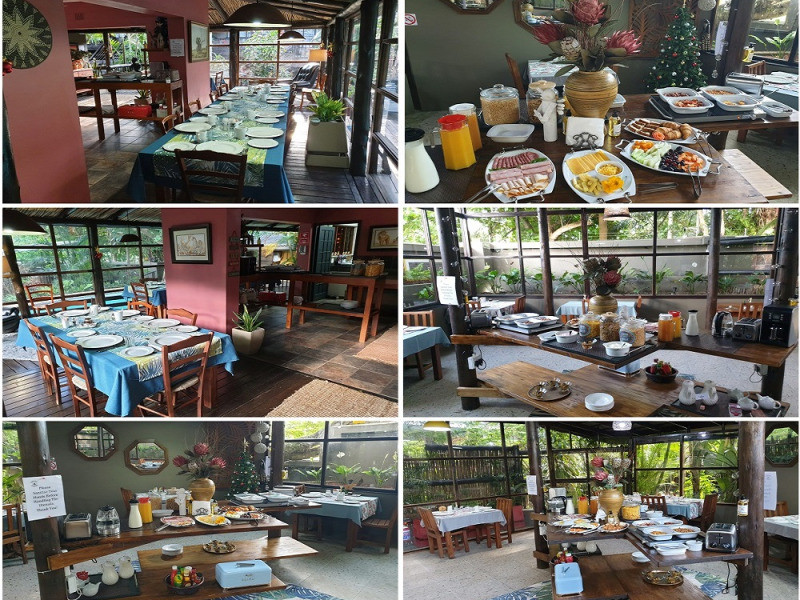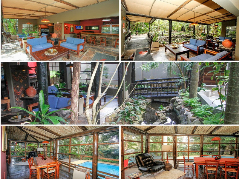 We offer 13 comfortable en-suite guest rooms in our tropical treehouse-like lodge. Guests can choose to laze on the wooden deck by the pool, make use of our free WiFi or relax in our bar lounge with an honesty bar and full Digital Satellite Television (DSTV) which is surrounded by a fishpond.