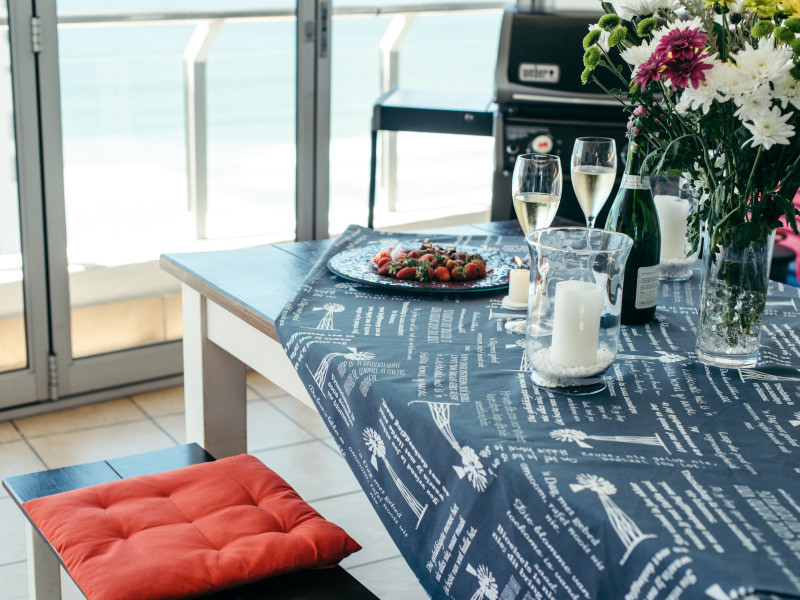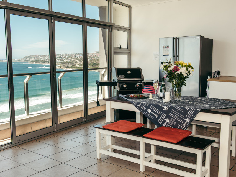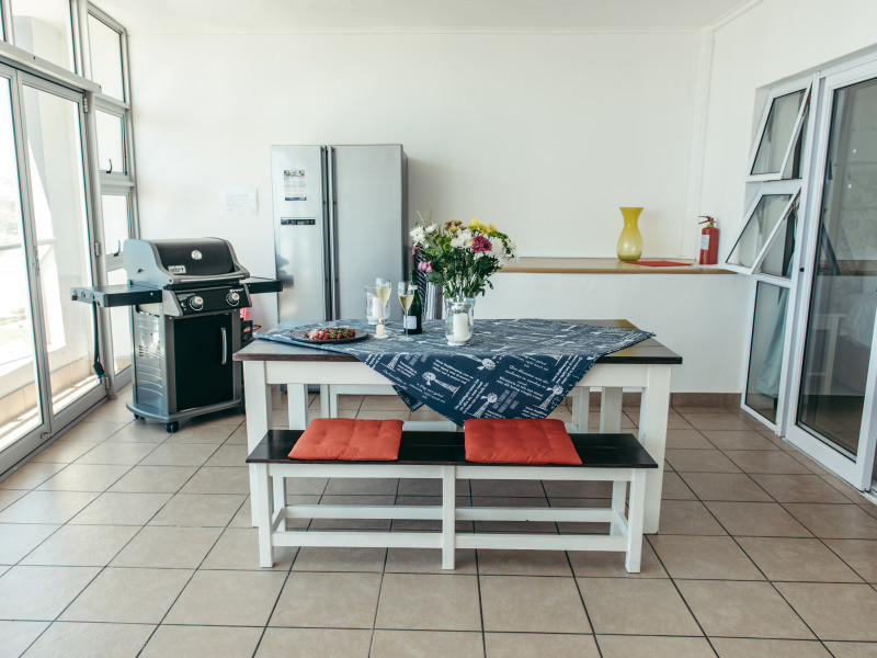 The balcony features a second lounge area with grass-woven day beds, a dining table and benches, and braai facilities. The balcony is enclosed with glass shutter doors that allow you to entertain throughout all weather conditions and looks right onto the sea. Vista Bonita offers a communal braai area and 1 undercover parking garage is provided.